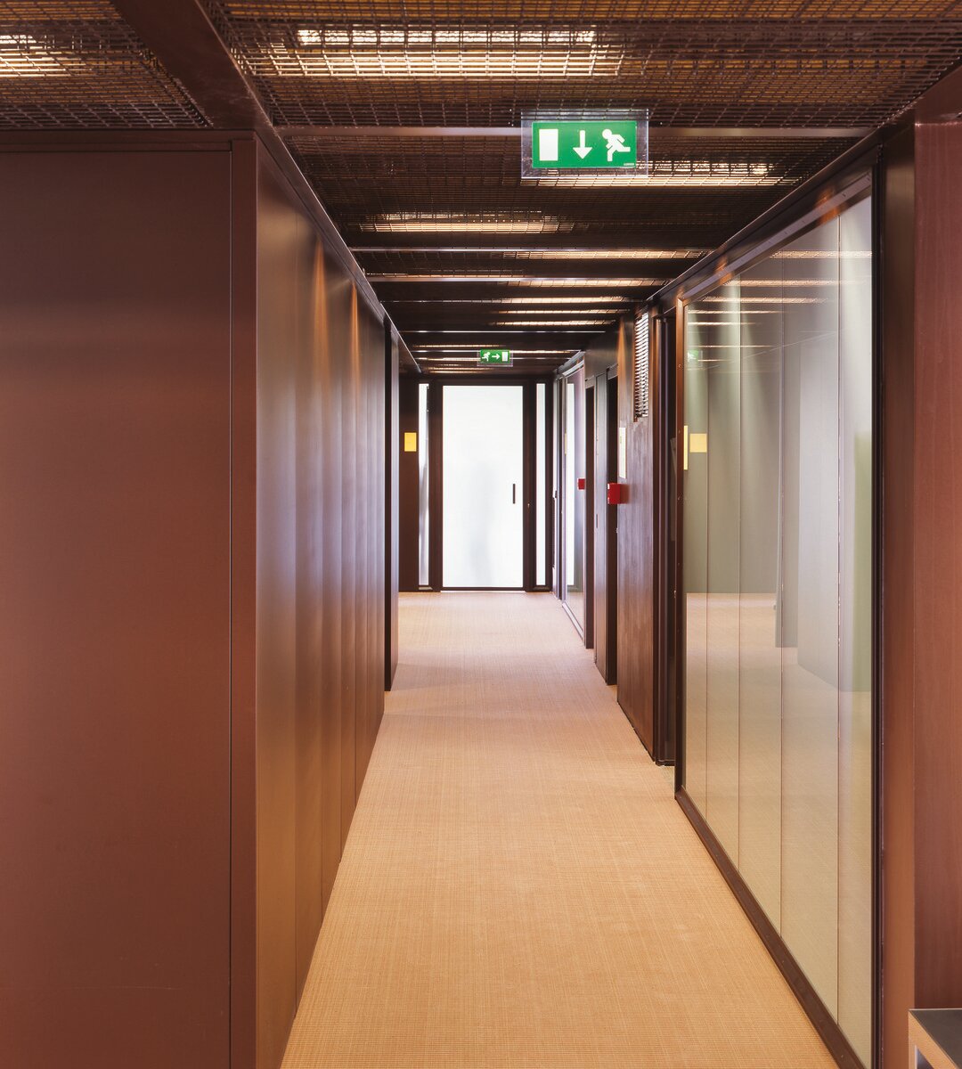 The system LMD-St 213 impresses with design freedom and ease of maintenance. Diverse mesh types, shapes and sizes are available. The ceiling panels can be removed – a combination with Swing-Down ceiling panels is also possible. Create visual highlights with accentuated joints up to 30 mm, or expanded ceiling panels with backlighting.
