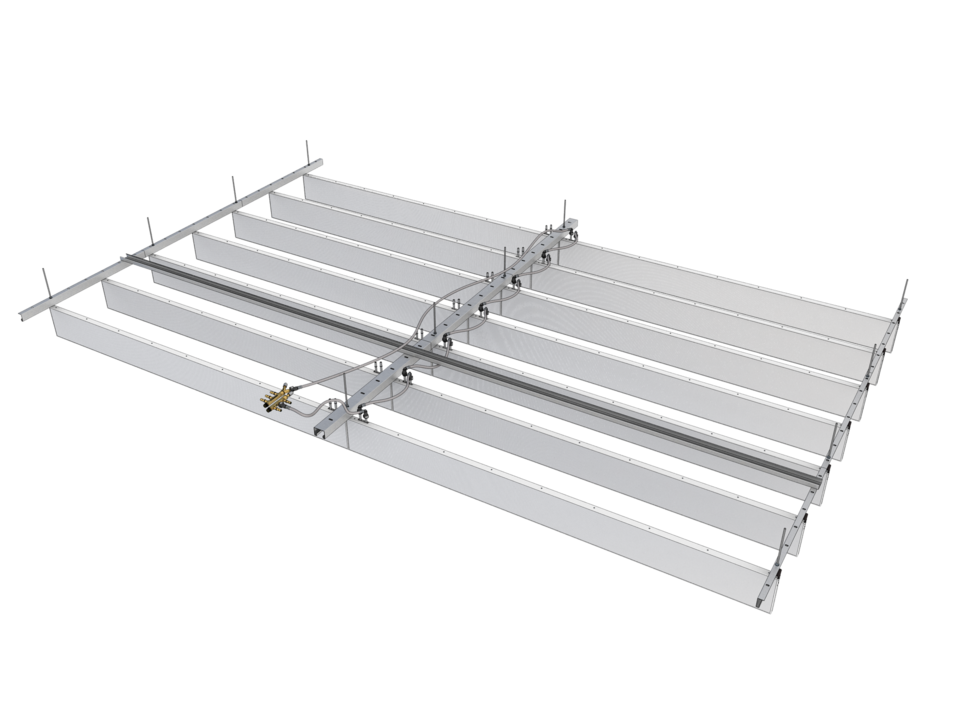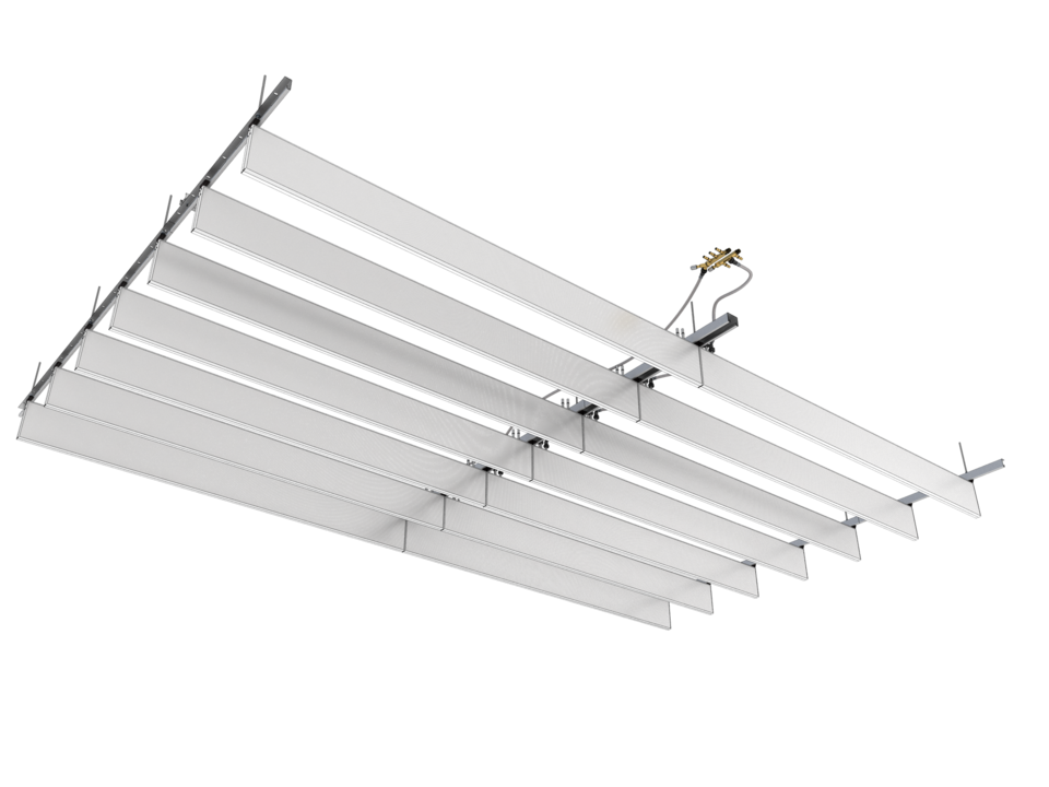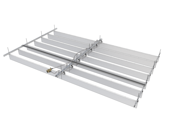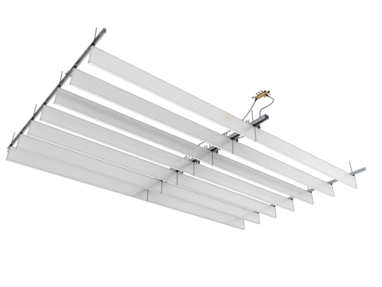 Diese lineare Lamellendecke ist besonders für Bereiche mit erhöhten Revisionsanforderungen geeignet. Durch die verschiebbaren Lamellen gelangen Sie komfortabel in den Deckenhohlraum. Die offene Bauweise vereint zudem hohe Kühlleistung und variable Gestaltungsmöglichkeiten. Durch frei wählbare Achsraster und Lamellenabmessungen schaffen Sie eine einzigartige Optik in Ihren wohl temperierten Räumen. Der Deckenhohlraum zwischen den Lamellen kann für Installationen genutzt werden. Die Metalllamellen sind einfach und schnell montiert – auch eine Kombination mit passiven Lamellen ist möglich.