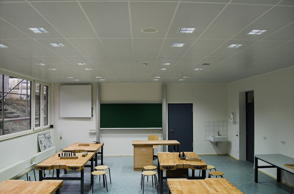 Die wirtschaftliche Einhängedecke LMD-E 210 basiert auf einer verdeckten Grundkonstruktion mit geringer Aufbauhöhe. Die stirnseitige Einhängekantung ist präzise auf die dazugehörigen Profile abgestimmt und sorgt so für eine automatische Ausrichtung des Fugenbildes. So ergibt sich eine homogene Deckenfläche mit durchlaufender Haarfuge. Für Revisionszwecke können Deckenplatten dieses Systems einfach einzeln und werkzeuglos abgenommen werden.