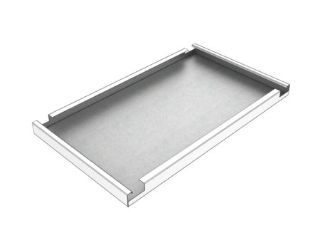 Diese Deckenkonstruktion bietet eine verdeckte Einhängekonstruktion mit Schattenfuge für den Flurbereich. Die Deckenplatten werden in den verstellbaren Wandanschluss eingehängt – so ist es jederzeit möglich, Toleranzen an der Wand auszugleichen. Für Revisionszwecke kann jede Deckenplatte abgenommen oder abgeklappt und verschoben werden, ganz ohne Werkzeuge.