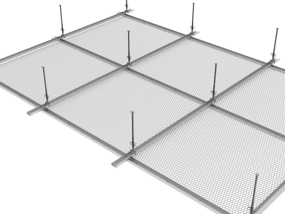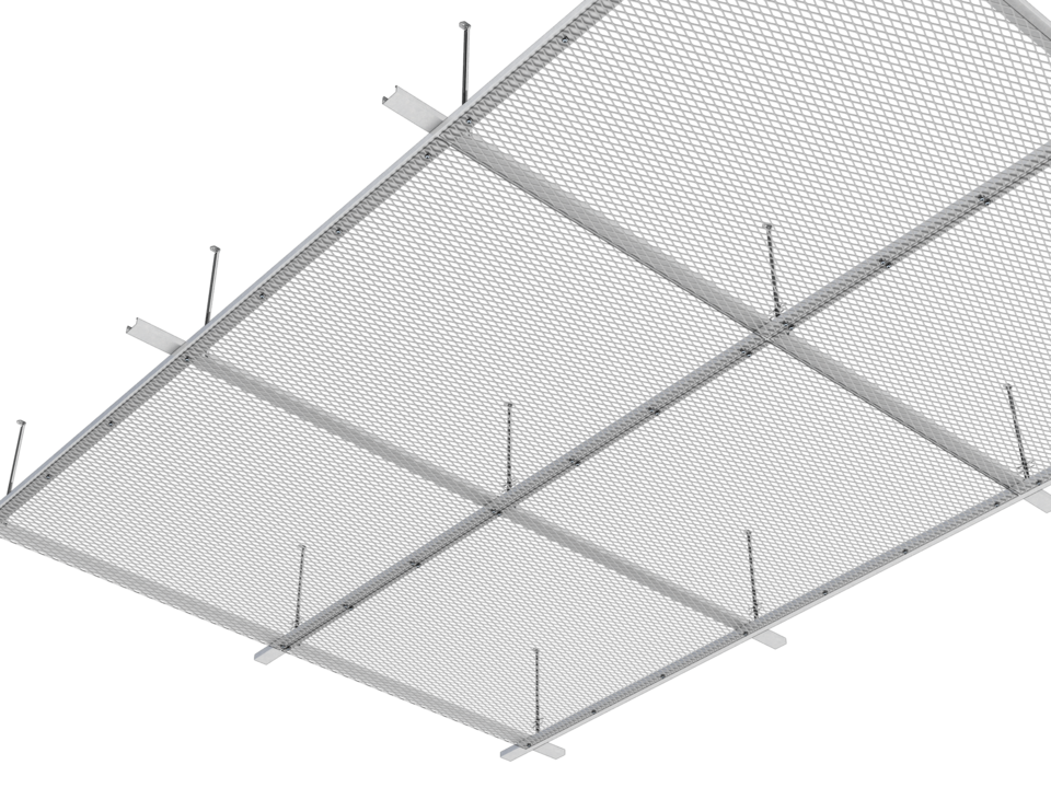 Das System mit geprüfter Ballwurfsicherheit generiert im montierten Zustand ein annähernd nahtloses Gesamtbild. Grund hierfür sind ungekantete Streckmetallplatinen, welche an CD-Profile montiert werden. Eine große Auswahl an Streckmetallmaschen bietet Ihnen viele Gestaltungsmöglichkeiten. Ist eine freie Sicht in den Deckenhohlraum gefordert, so sind Maschen mit hohem freiem Querschnitt erhältlich. In diesem Fall können Einbauten auch im Deckenhohlraum angebracht werden.
