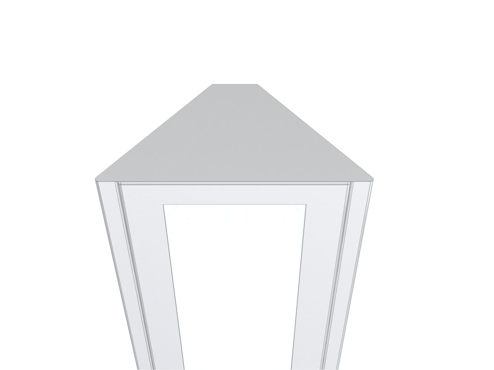 Für die einfache Montage beim Übergang von der Decke zur Wand ist diese Dreiecksleuchte ideal. Als Aufbauleuchte lässt sie sich, dank der entsprechenden Konstruktion, nahtlos anbringen. Besonders die angenehme Beleuchtung von Arbeitsplätzen als auch sämtlicher Räumlichkeiten kommt hier zum Tragen. Die Deckeneinbauten bleiben dabei vollkommen unberührt. Für die Ausbildung an Ecken und bei Überlängen lassen sich optisch anspruchsvolle Übergangsstücke montieren, so dass den hygienischen Anforderungen entsprochen wird.