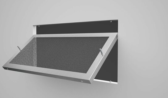 Hier werden im Gitter Magnete fixiert, die das Gitter an einem in die Leibung montierten Gegenrahmen halten (werkzeuglose Demontage)