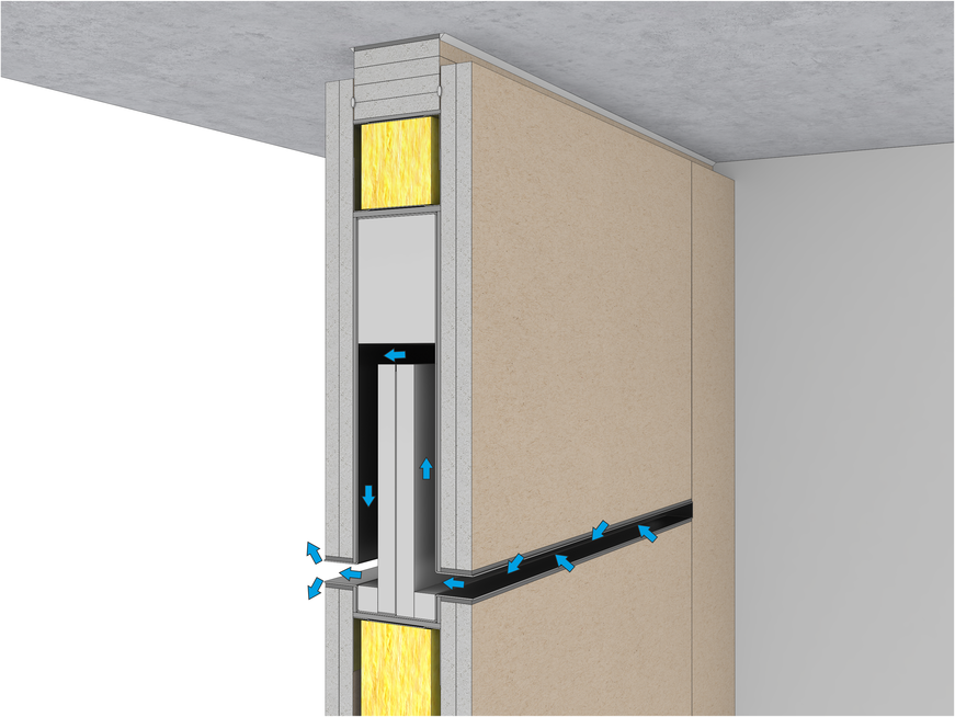 Das Überströmelement Typ GK U-75 silent kann flächenbündig in die Gipskarton-Trennwand integriert werden. Die Ein-/Ausströmöffnung des Elements besitzt eine schmale Ansichtsbreite von 15 mm.