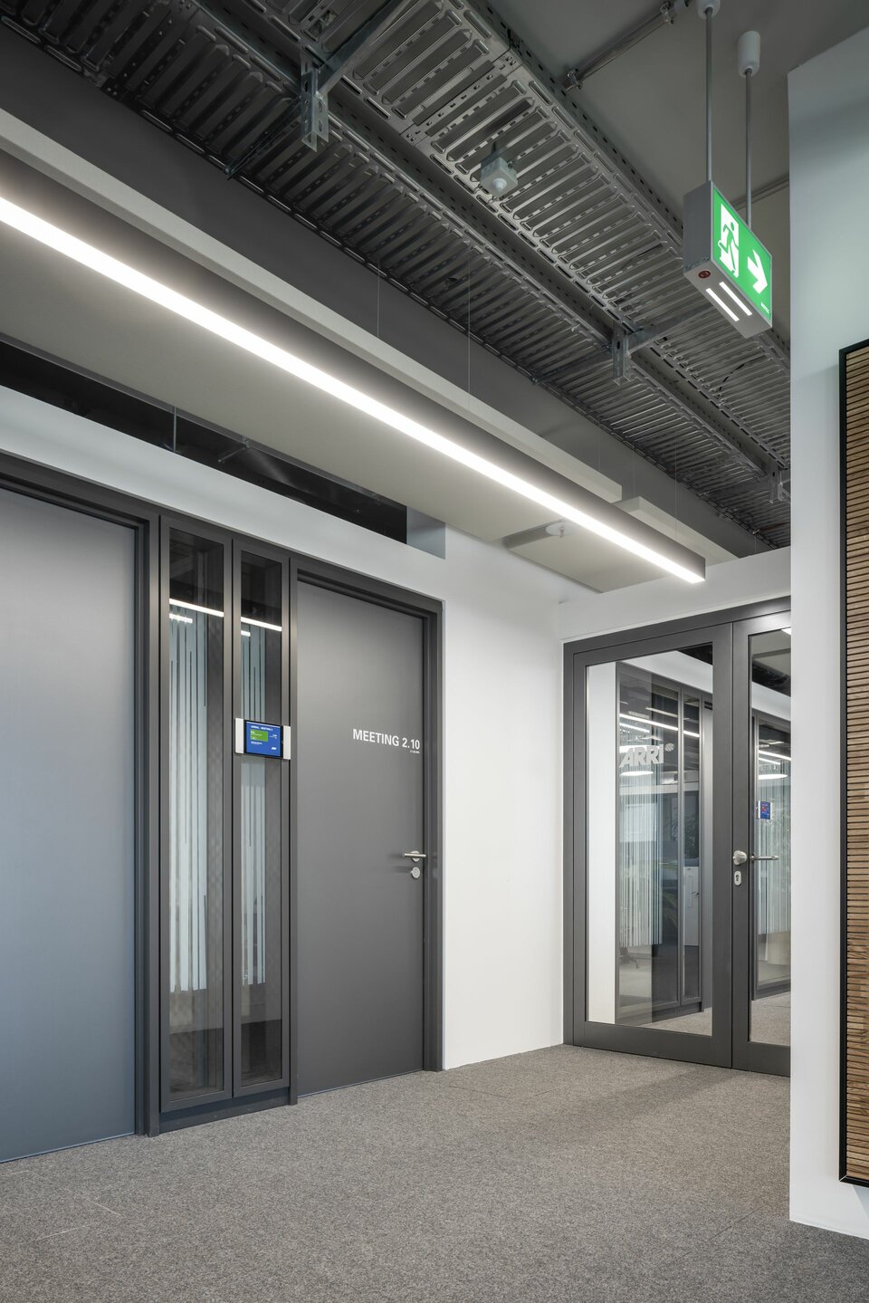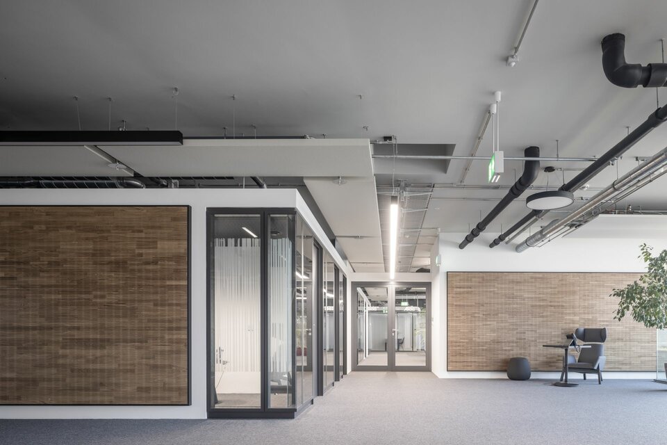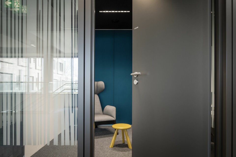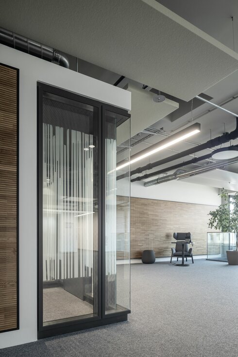 Innerhalb der neuen Bürowelten finden sich klare Linien und schlichte Eleganz – stets gepaart mit maximaler Funktionalität. Als Experte für innovative Arbeitsumgebungen wurde die Lindner Group mit der Ausführung diverser Gewerke beauftragt: Decken und Wände aus Gipskarton sowie Trockenputz bilden die Basis für den Innenausbau. Erweitert wurde dieser um einflügelige Objekttüren des Typs A1. Die von ARRI gewünschten Rückzugsorte setzte Lindner mithilfe von Raum-in-Raum Systemen um – dank optimierter Akustik und elegantem Design sind diese die perfekte Lösung für Konzentration und Ruhe.
