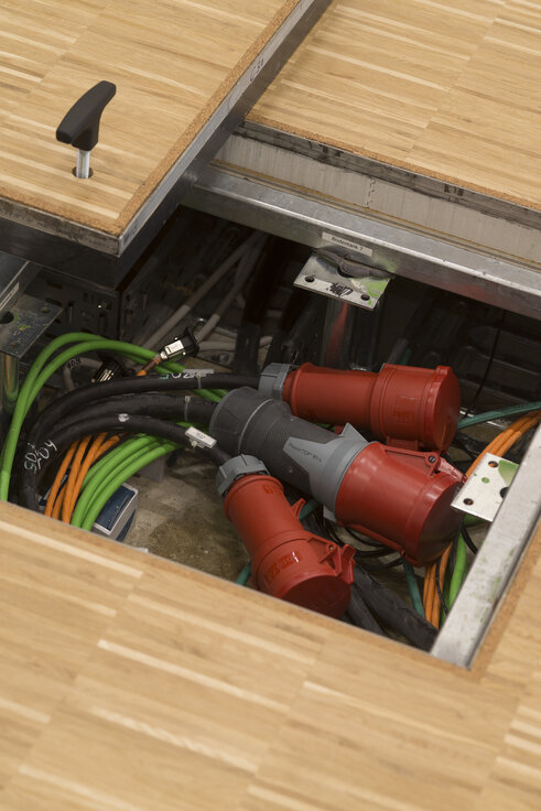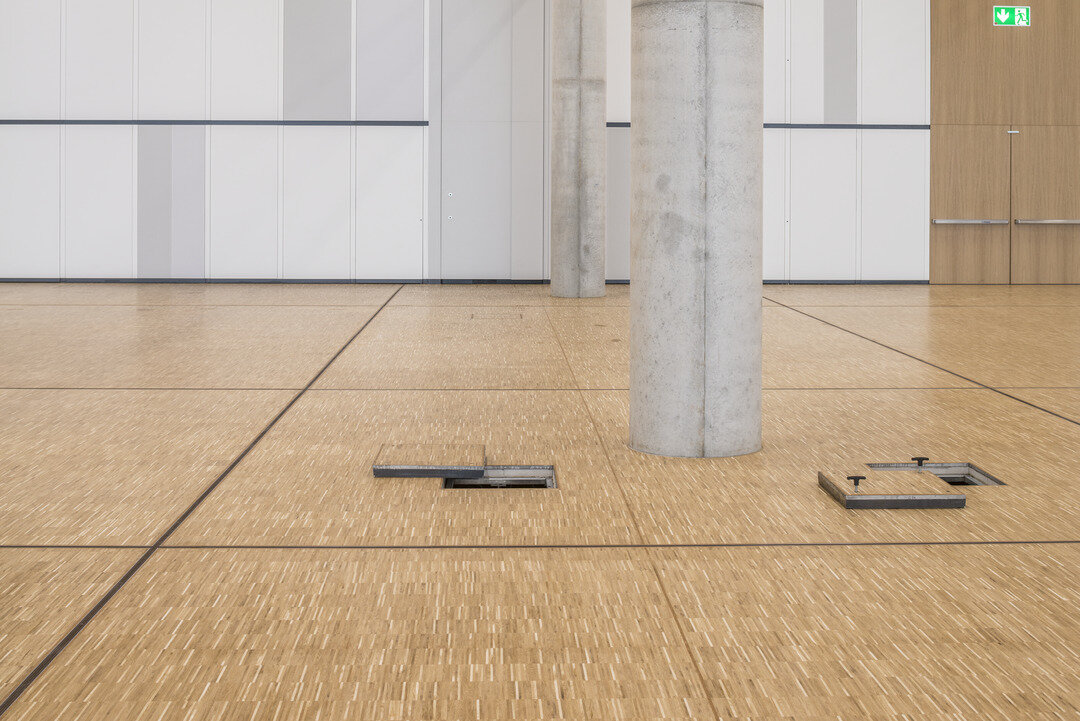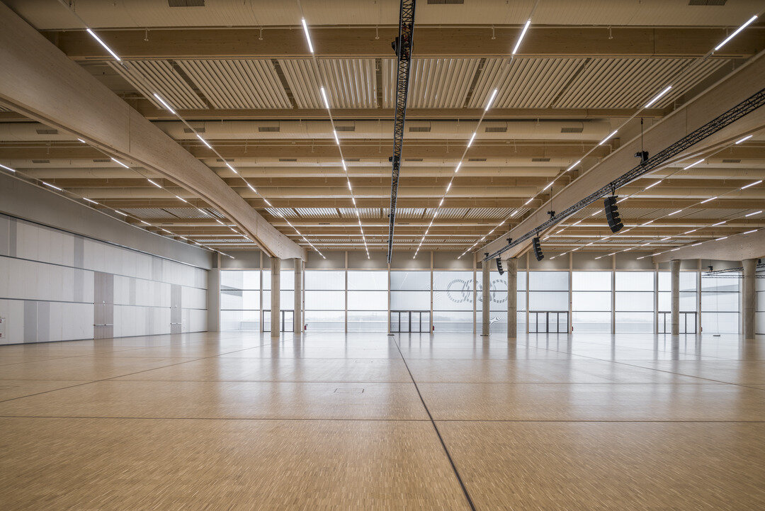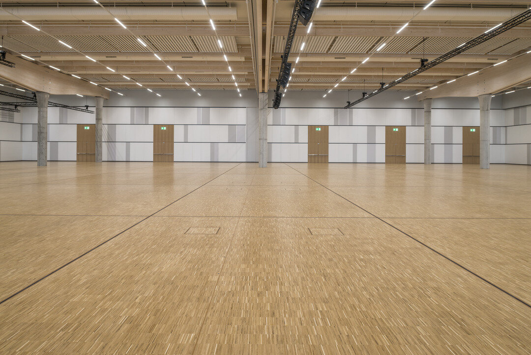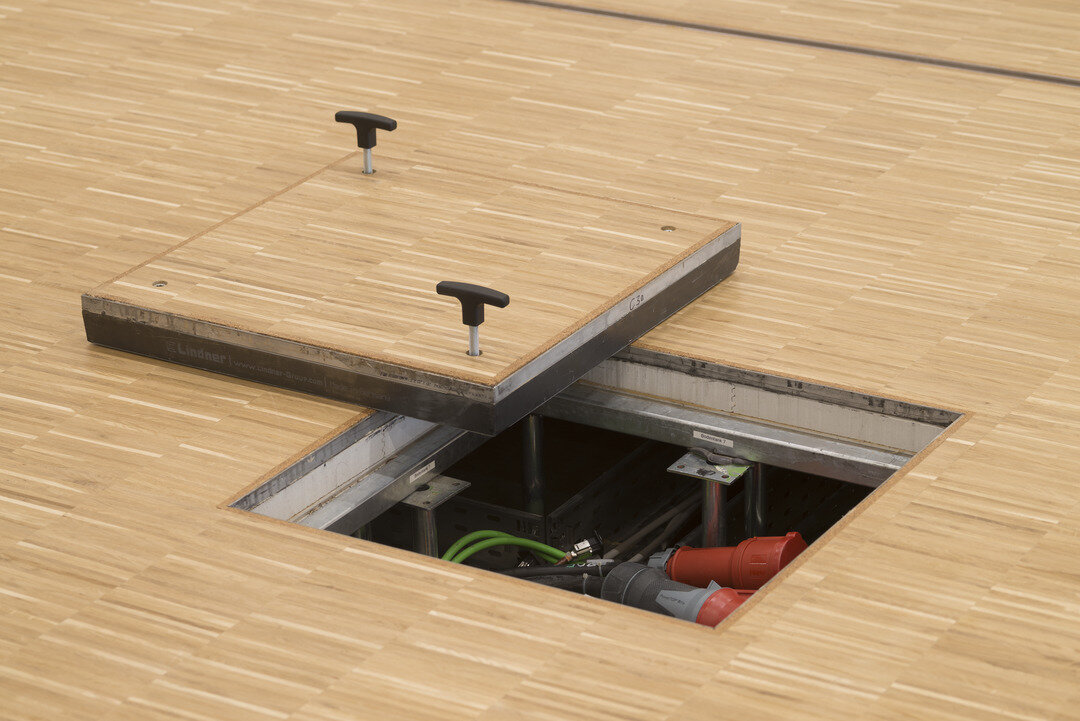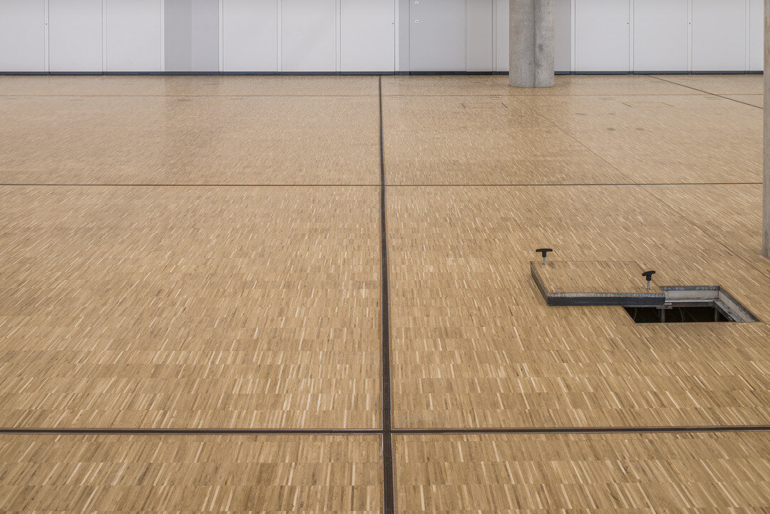 Neben ihrer enormen Größe beeindruckt die Halle durch funktionelle Details. Auf einer Fläche von 6.500 m² wurde der besonders belastbare Hohlboden FLOOR and more® power verbaut, wofür eine Bauzeit von lediglich 6 Wochen veranschlagt war. Dieser ermöglicht die Unterbringung von technischen Installationen im Bodenhohlraum, während er genügend Traglast erlaubt, um große Menschenmengen sowie tonnenschwere Präsentationsfahrzeuge zu stützen. Als Belag wurde Parkett im Industriedesign gewählt. Um Wartungs- und Revisionsarbeiten zu begünstigen, wurde an ausgewählten Stellen das Doppelbodensystem NORTEC installiert. In Feucht- und Nassbereichen wurde der hierfür optimierte Hohlboden FLOOR and more® hydro verbaut, in den Nebenräumen FLOOR and more® hydro power. Die Lindner Isoliertechnik & Industrieservice GmbH führte darüber hinaus Isolierungsarbeiten an der Haustechnik der Veranstaltungshalle aus.