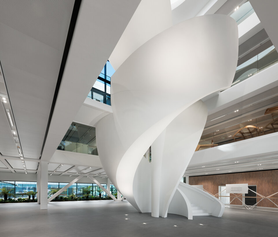 Mit ihrem neuen Unternehmenssitz im baden-württembergischen Müllheim setzt AUMA ein klares Statement für Innovation, Funktionalität und eine zukunftsorientierte Arbeitswelt. Der führende Hersteller elektrischer Stellantriebe bündelt in dem modernen Neubau seine internationalen Aktivitäten und schafft auf 11.500 m² Bruttogeschossfläche eine inspirierende Umgebung für rund 220 Mitarbeitende. Klare Strukturen, offene Kommunikationszonen und großflächige Bürobereiche fördern kooperative Arbeitsprozesse und den kreativen Austausch zwischen einzelnen Unternehmensbereichen. Großzügige Glasfassaden sorgen für viel natürliches Licht, während organisch geformte Holzelemente natürliche Akzente setzen.