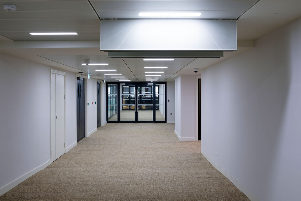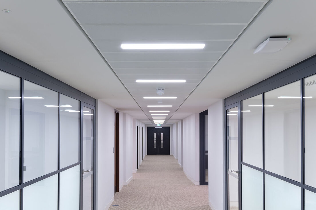 Overbury, ein Spezialist für Bürosanierung und -einrichtung, beauftragte Lindner Interiors mit der Lieferung und Installation der Lindner Brandschutzdecken. Damit ist das Projekt das erste in Großbritannien, in welchem feuerbeständige Deckensysteme von Lindner verbaut sind. Die LMD-Brandschutzdecke EI30 Eingehängt-Abklappbar-Verschiebbar wurde in den Korridoren installiert. Im Falle eines Brandes gewährleistet die Decke ganze 30 Minuten Feuerbeständigkeit und ermöglicht somit einen sicheren Fluchtweg. Darüber hinaus nahmen die Architekten MCM und HK Architects Ltd. gemeinsam mit Overbury die Möglichkeit wahr, das Deckensystem um vielseitige Beleuchtungslösungen zu ergänzen. Nach Abschluss der Installation führten das Lindner Team vor Ort einen Schulungstag für die am Projekt beteiligten Unternehmen durch: Dabei ging es um die Entfernung des feuerbeständigen Deckensystems sowie den Zugang zum Deckenhohlraum. Damit sowie mit der zusätzlichen Installationsanleitung sind die Eigentümer nun bestens gerüstet für zukünftige Wartungsarbeiten oder Umbauten.
