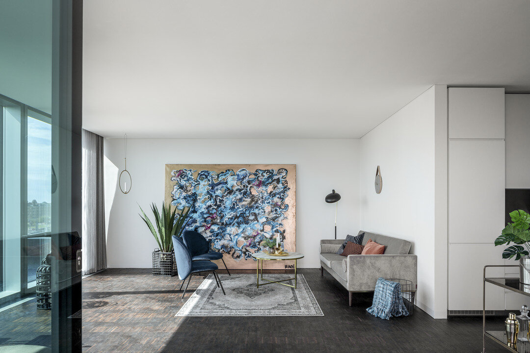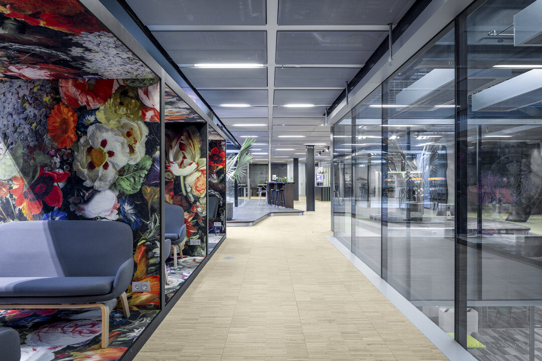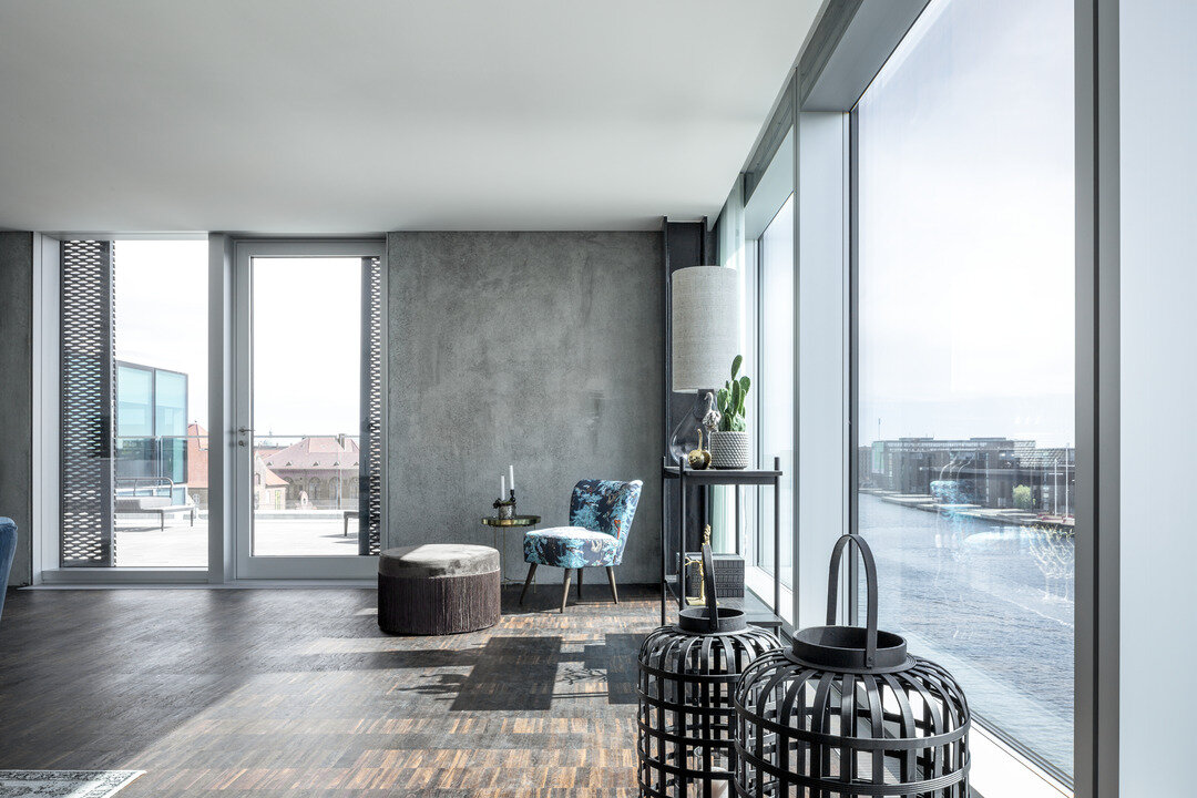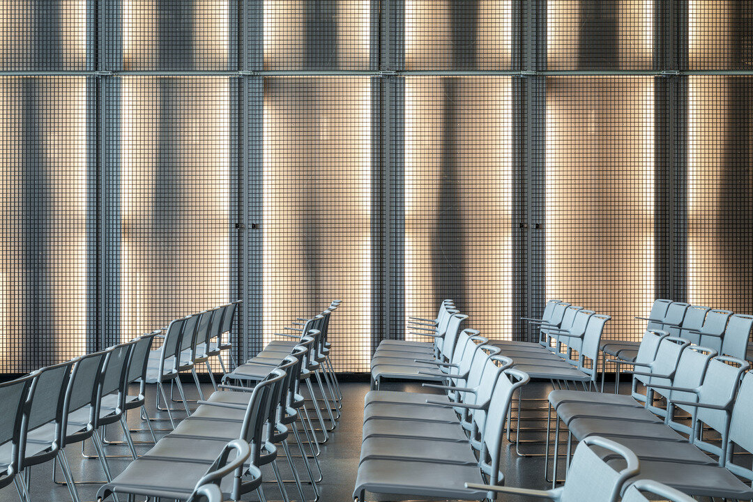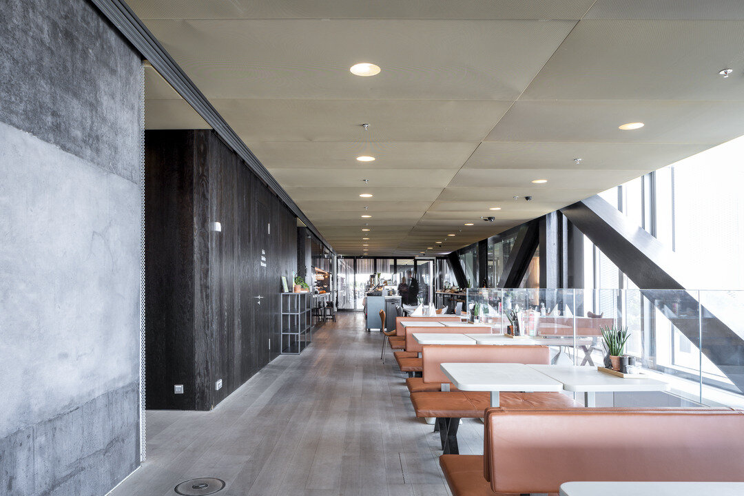 Lindner hat wesentliche Teile zum Innenausbau des BLOX beigetragen. In dem vielfältigen Nutzungskonzept wurden große Mengen an Decken, Böden, Wänden und Türen verbaut, die zu einem überwiegenden Teil aus der Produktion von Lindner stammen. Darüber hinaus führte Lindner Trockenbauarbeiten sowie akustische und thermische Isolierarbeiten aus. Im Hinblick auf die Systemböden wurden sowohl Doppel- als auch Hohlböden verbaut. Die Doppelböden des Typs NORTEC wurden teils mit werkseitig appliziertem Parkettbelag (Eiche) oder bauseitig gelegtem Teppichbelag ausgeführt. In den Privatwohnungen des BLOX wurden FLOOR and more® hydro Hohlböden verbaut. Für die effiziente und behagliche Temperierung installierte Lindner in vielen Teilen des Gebäudes Heiz- und Kühldecken des Typs Plafotherm® KN. Dieses System nutzt sowohl Strahlung als auch Konvektion um die Wärme bzw. Kälte im Raum zu verteilen und steht darüber hinaus im Einklang mit dem nachhaltigen Gesamtkonzept des Gebäudes. Die Streckmetallplatten dieser Decken sind harmonisch auf die Perforationsmuster der Metall-Wandverkleidungen abgestimmt, welche ebenfalls durch Lindner eingebracht wurden. Für räumliche Trennung bei maximaler Transparenz sorgen Glastrennwände des Typs Lindner Life 622 mit integrierten Türen.