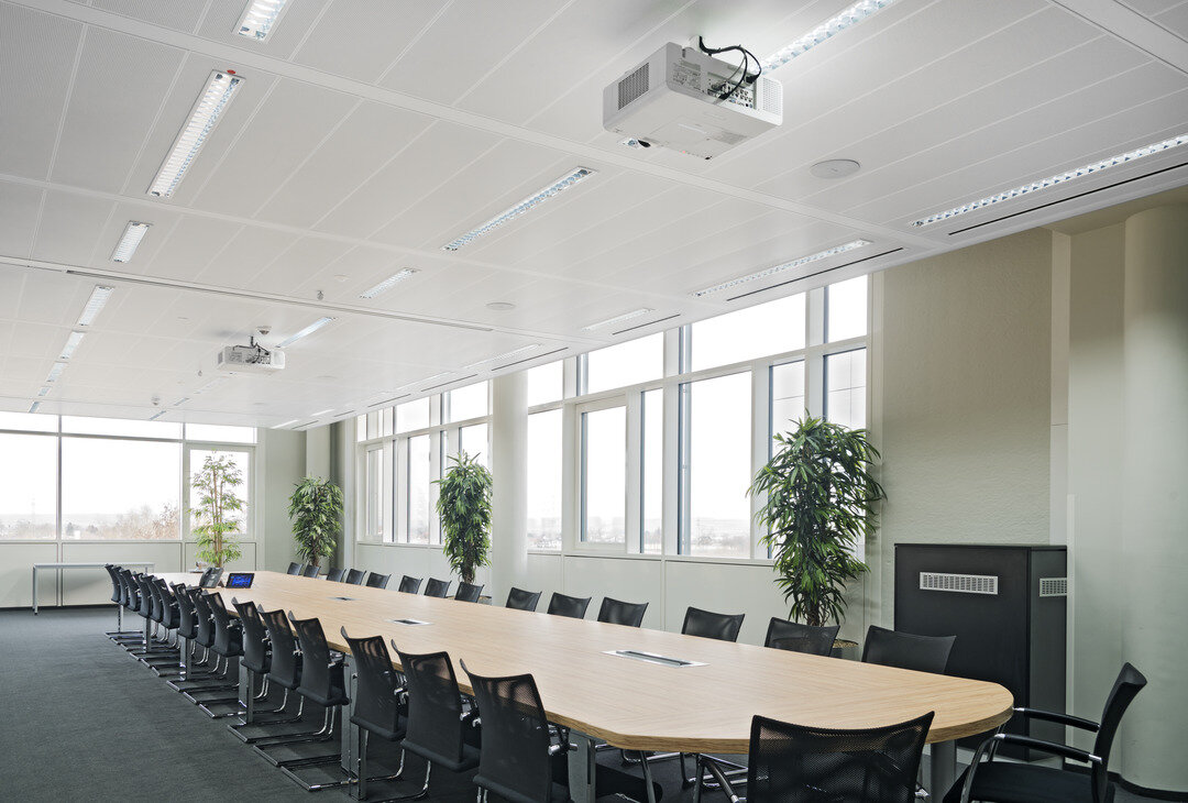 Lindner war bei diesem Projekt mit der Produktion und Montage von Bandrasterdecken mit Heiz- und Kühlfunktion beauftragt, welche in den weiträumigen Büroflächen und Konferenzräumen für angenehme Temperaturen sorgen. Dank energieeffizienter Deckenstrahltechnik im Zusammenspiel mit Wärmerückführung aus Forschungsprozessen sind die Deckensysteme zudem ein wesentlicher Bestandteil des anspruchsvollen Energiekonzepts.