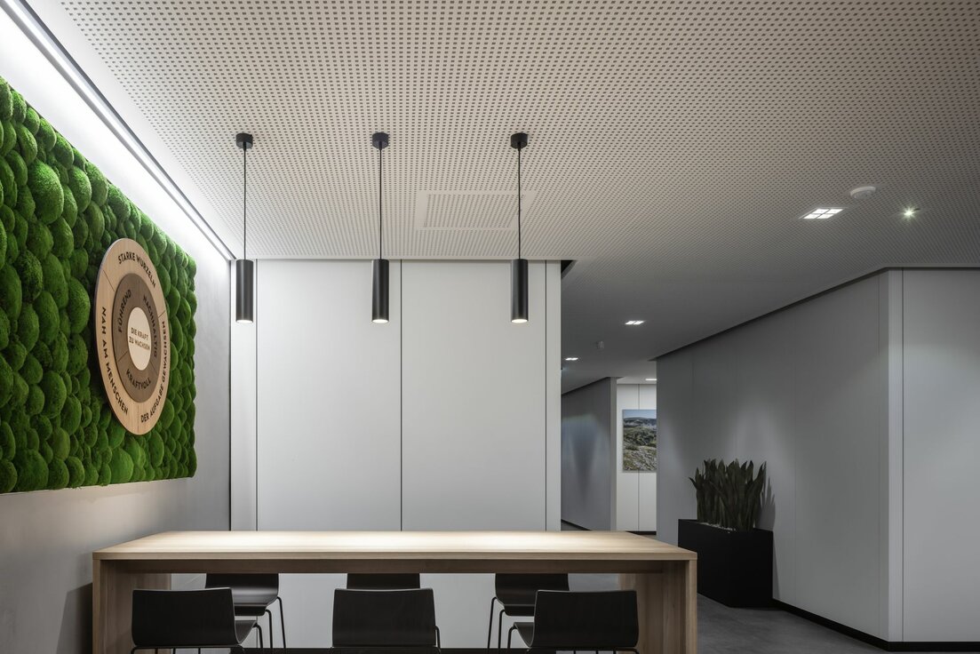 Für die Revitalisierung des STIHL Werks 6 in Waiblingen übernahm Lindner die Bauleitung aller Gewerke – inklusive Terminplanung, Koordination und Durchführung der Baubesprechungen. Zu Beginn des Projektes erfolgte dabei der Rückbau der bestehenden Trennwandsysteme inklusive Schadstoffentsorgung und Freimessung des Baufeldes. Zudem lieferte Lindner umfassende Innenausbaulösungen für das Werksgebäude: Neben Glastrennwandsystemen in verschiedenen Brandschutzklassen und Schallschutzvarianten wurden auch Metall- und Stoffabsorber zur Optimierung der Akustik installiert. Darüber hinaus finden sich Bodenbeläge aus Vinyl und Teppich - sowie diverse Türen, teils mit Brandschutz und Oberlichtern ausgeführt, im Gebäude wieder. Besonders bemerkenswert ist dabei der F30-Fluchttunnel aus Lindner Trennwänden, F30-Trockenbaudecken und Schotten: Dieser führt TGA-Installationen ohne zusätzliche Brandschutzmaßnahmen. Umfangreiche Maler- und Trockenbauarbeiten mit Loch- und F30-Decken in Deckensegel-Optik runden das Projekt ab.