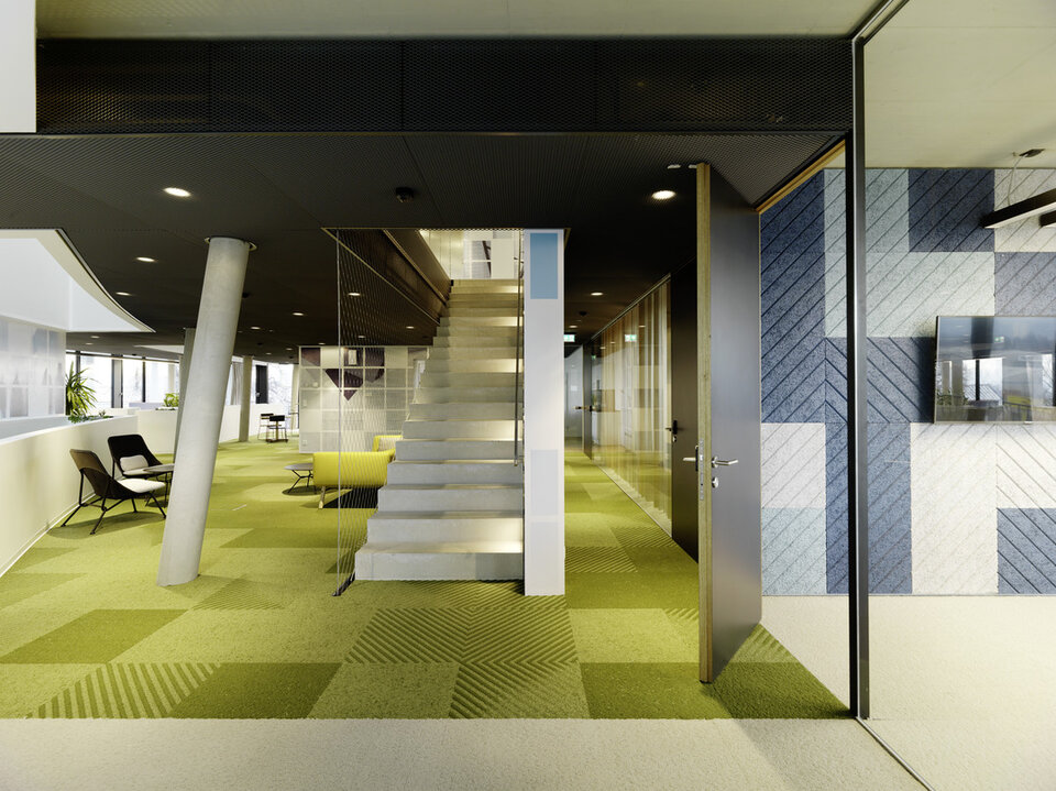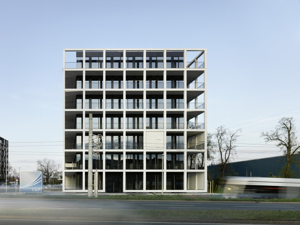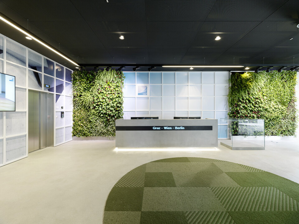 Das Immobilienunternehmen C&P errichtete im österreichischen Graz ein neues Hauptquartier. Die Gestaltung des Gebäudes orientiert sich am Corporate Design sowie den zentralen Werten des Unternehmens: Transparenz, Mehrwert, Struktur, Flexibilität, Bewegung und Effizienz. Auf dieser Basis schuf das örtliche Architekturbüro INNOCAD einen klar strukturierten Kubus mit über 1.900 m² Bürofläche. Bei der Konzeption der Büroumgebung wurden die Bedürfnisse der Mitarbeiter und die aktuellsten Erkenntnisse zur der Gestaltung von Open-Space-Büros vereint, um die sogenannten Creative Spaces zu schaffen. Es handelt sich um ein Raumkonzept mit verschiedenen, aktivitätsbasierten Zonen um das optimale Umfeld für jede Form der Arbeit bereitzustellen.