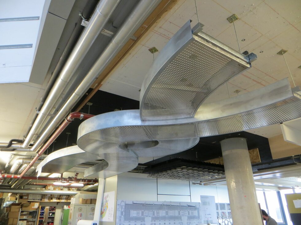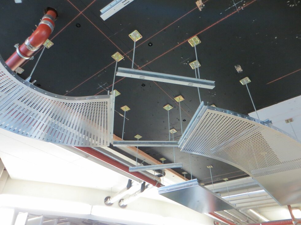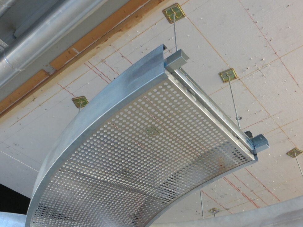 Lindner Individuelle Decken. Perforierte Metallpaneele mit gebogenen Zierleisten.