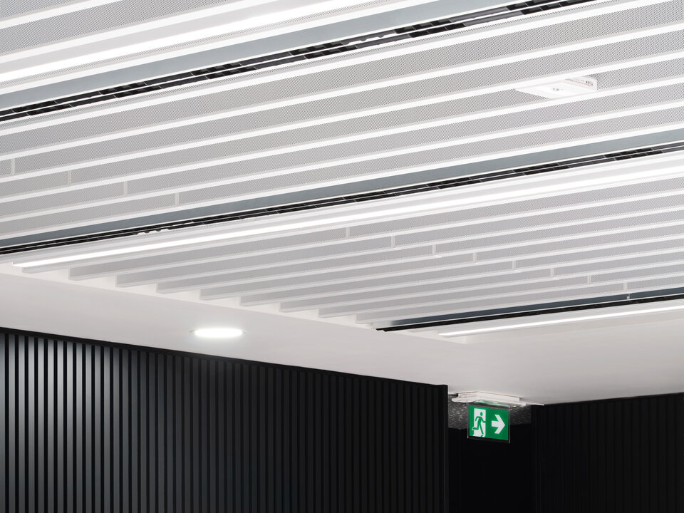 Neben der funktionalen Qualität erfüllt das System auch nachhaltige Anforderungen. Die Metalllamellendecke ist Cradle to Cradle Certified® Gold und erreicht die Emissionsklasse A+. Damit verbindet die Lösung Revisionsfreundlichkeit, technische Flexibilität und Qualität in einem klar strukturierten Innenraum.