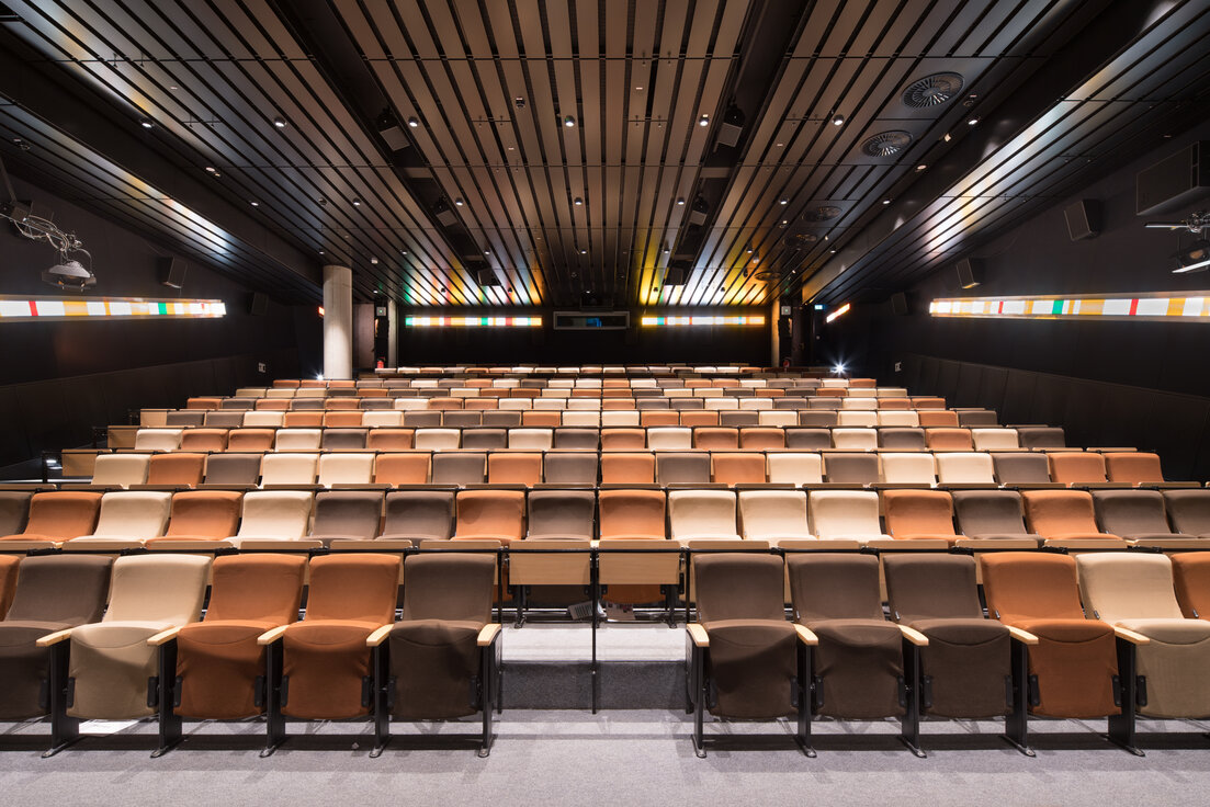 Um dem hohen Level an Wissen, Technik und Kreativität den perfekten Rahmen zu geben, wurde im Hauptgebäude eine umfassende Sanierung der Kinosäle und Regieräume durchgeführt.