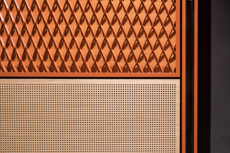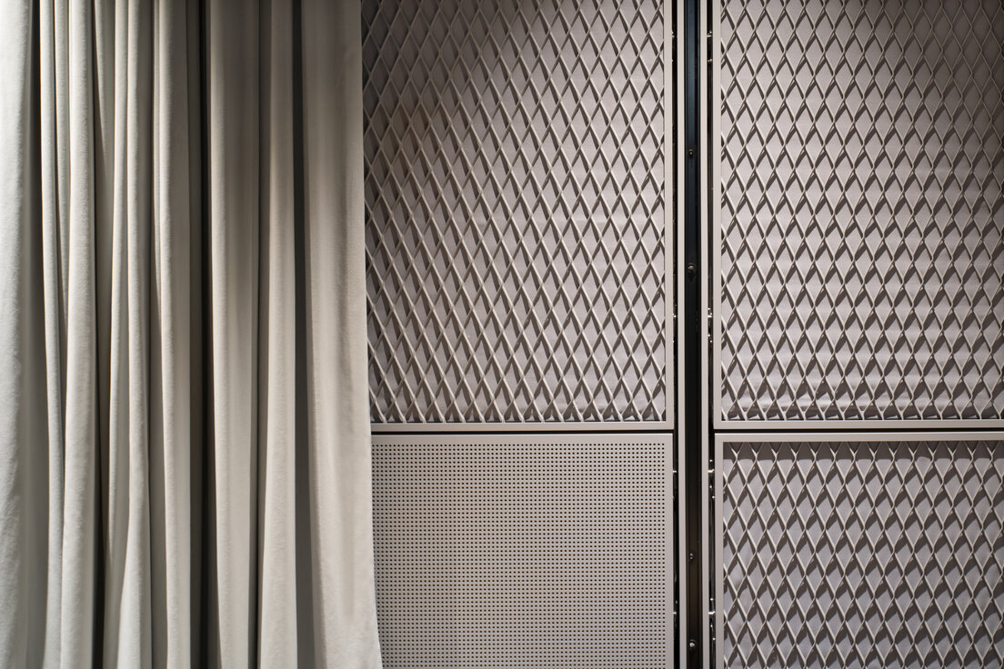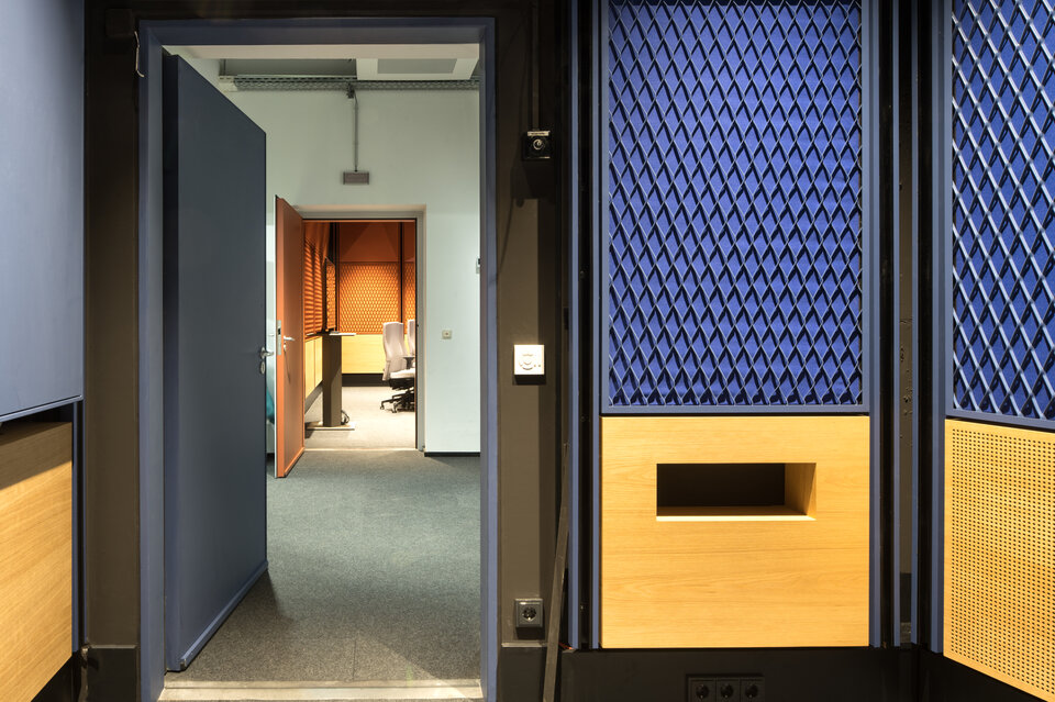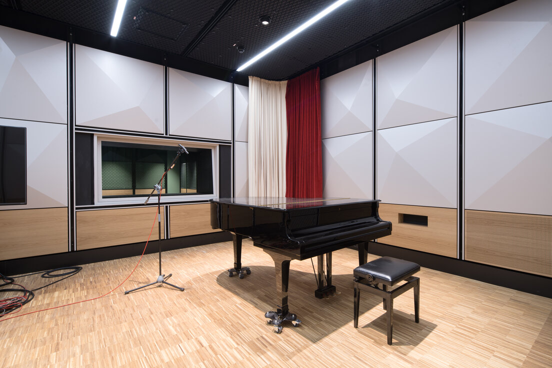 Die Aufnahmestudios wurden mit perforierten Wandverkleidungen aus Holz sowie stoffbespannten Wandverkleidungen in kreative Bereiche verwandelt, die eine warme Atmosphäre mit optimaler Akustik schaffen. Streckmetallwandverkleidungen setzen architektonische Akzente in den Sälen und Studios und runden das Gesamtbild ab.