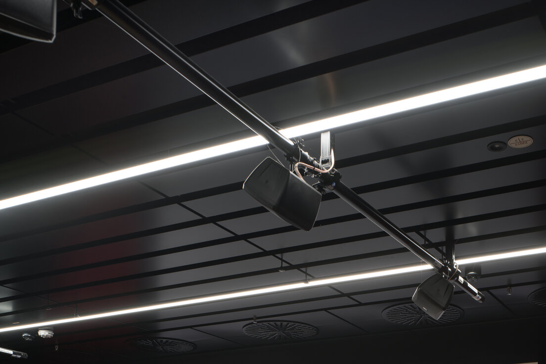 Die Lindner Group hat als Komplettanbieter für Innenausbau maßgeblich zur Sanierung und Modernisierung der Räumlichkeiten beigetragen, inklusive Lindner Produkten. Die Installation der LMD-St 700 BWS Streckmetalldecke sorgt nicht nur durch ihre vielfältigen Gestaltungsmöglichkeiten, sondern auch durch integrierte Leuchten für ein stimmungsvolles Ambiente. Darüber hinaus ermöglicht ein Doppelboden - mit ableitfähigem Teppich Oberbelag - eine flexible Infrastruktur und eine unauffällige Installation von Kabeltrassen, die sich den Bedürfnissen der Nutzer anpasst.