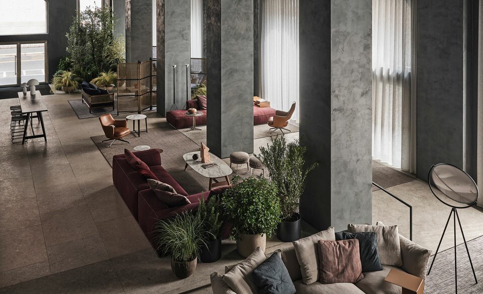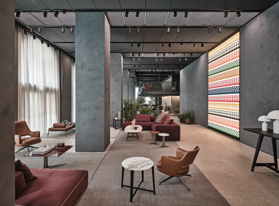 Das Projekt stammt von ACPV ARCHITECTS Antonio Citterio Patricia Viel. Das Architekturstudio hat ein innovatives Konzept für einen besonders flexiblen Raum ausgearbeitet, der einfach umgestaltet werden kann und darauf abzielt, eine authentische und immersive Brand-Experience zu bieten. Die 800 m² große Fläche des Showrooms verteilt sich auf zwei Stockwerke mit großen Fensterfronten, die mit der urbanen Landschaft in Dialog stehen. Hinter der Eingangsschwelle öffnet sich der Raum den Besuchern wie ein Rundgang, auf dem alle Neuheiten der Kollektion 2022 präsentiert werden.