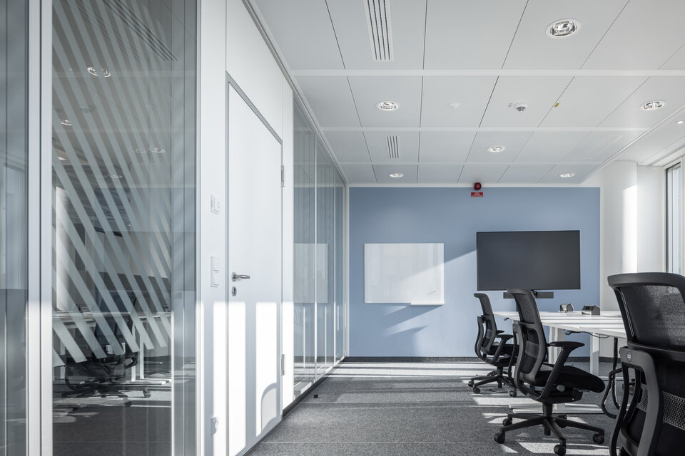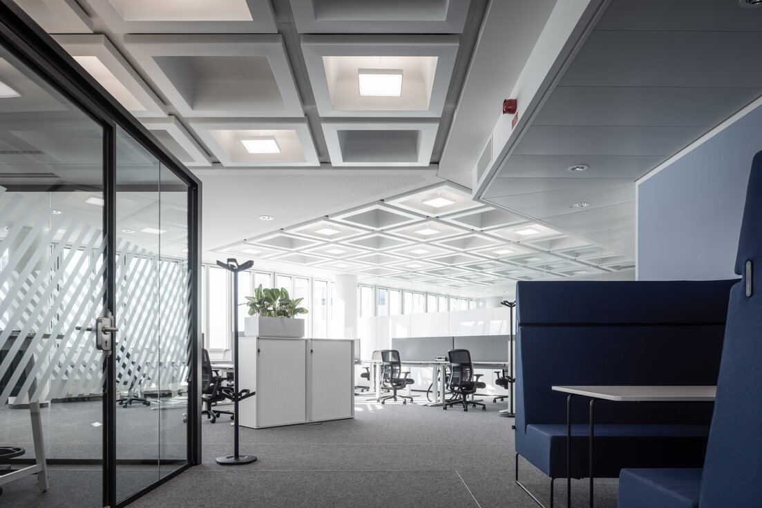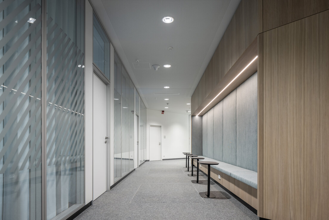 Neben der Sicherheit stand auch das Wohlbefinden der Nutzerinnen und Nutzer im Fokus der baulichen Maßnahmen: Schallabsorbierende Decken- und Wandverkleidungen, Spezialverglasungen sowie moderne Blendschutzsysteme tragen zu einer angenehmen, konzentrierten Arbeitsatmosphäre in Großraum- und Kommunikationszonen bei.