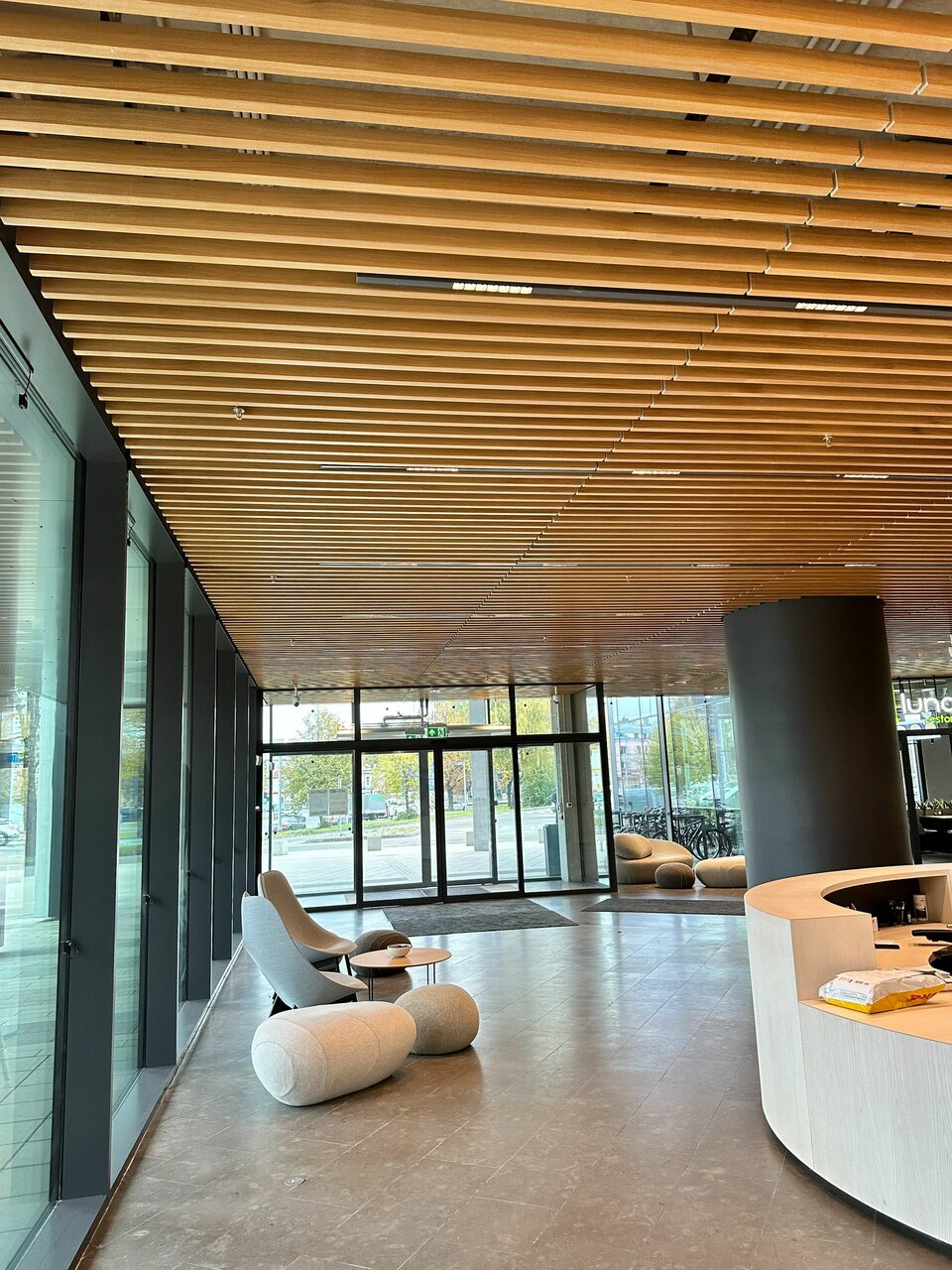 Lindner war maßgeblich an der Realisierung des nachhaltigen Konzepts beteiligt und lieferte insgesamt 11.000 m² Doppel- und Hohlböden für das Büroebäude. In den Flurbereichen und im Eingangsbereich entschied sich der Kunde für das Hohlbodensystem FLOOR and more®, um die Möglichkeit für einen Stein- oder Parkettbelag zu haben. In allen Bürobereichen verlegte unser lokaler Partner EcoGridas das Doppelbodensystem NORTEC. Zusätzlich zu unseren Bodensystemen wurden 3.500 m2 an Deckensystemen von Lindner geliefert. Für die Decken in den Arbeitsbereichen wurden 1.700 m2 Lindner-Metalldecken nach Maß gefertigt, die als homogene Deckenfläche dienen. In den Besprechungsbereichen wünschte sich der Kunde eine Bandrasterdecke, um die Möglichkeit zu haben, Trennwände zu befestigen und somit flexibel zu bleiben. Im Eingangsbereich wurden über 200 m2 unseres RIBline timber slat Deckensystems installiert, was den Nachhaltigkeitsfaktor des Business Centers widerspiegelt, da das Material aus unserem 100% recycelten Calciumsulfat besteht und mit einem natürlichen Eichenfurnier veredelt ist.