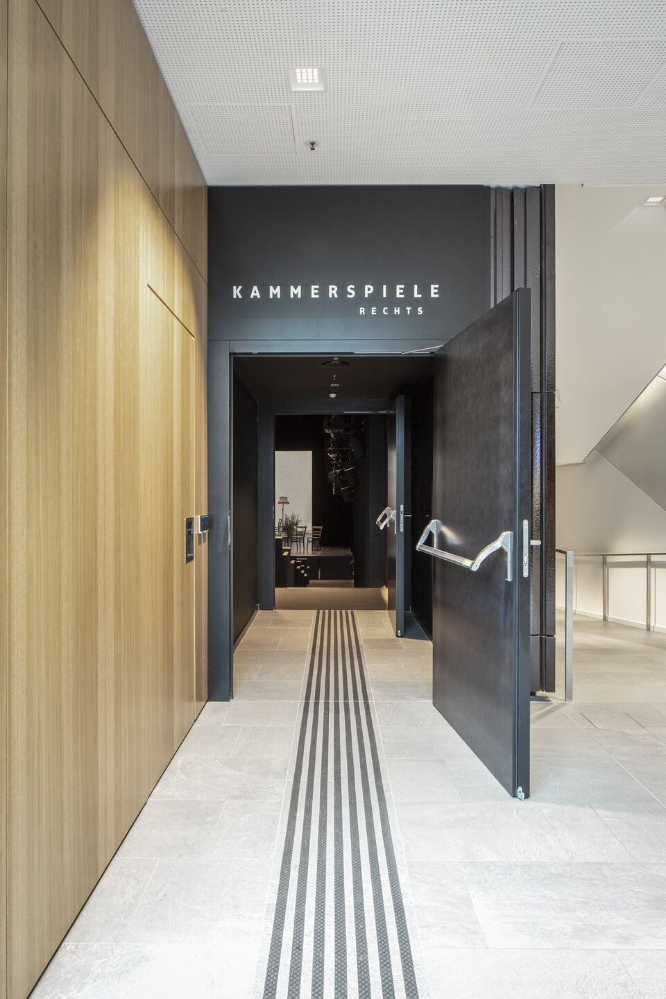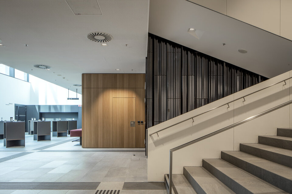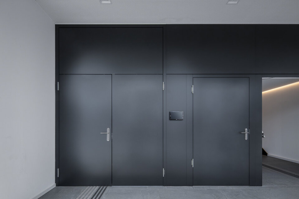 Die Lindner SE realisierte eine große Zahl an individuellen Sonderlösungen im Gebäude: Hochschallgedämmte Holztürelemente inklusive Doppeltüranlagen und Flügeltüren tragen zur ungestörten Probenatmosphäre bei. Optisch gehen sie nahtlos in die ebenfalls von Lindner gefertigten Wandbekleidungen über. Einige der Türen sind Teil der Rauch-Wärmeabzugsanlage (RWA) und leisten einen wichtigen Beitrag zur Sicherheit im Haus der Musik.
