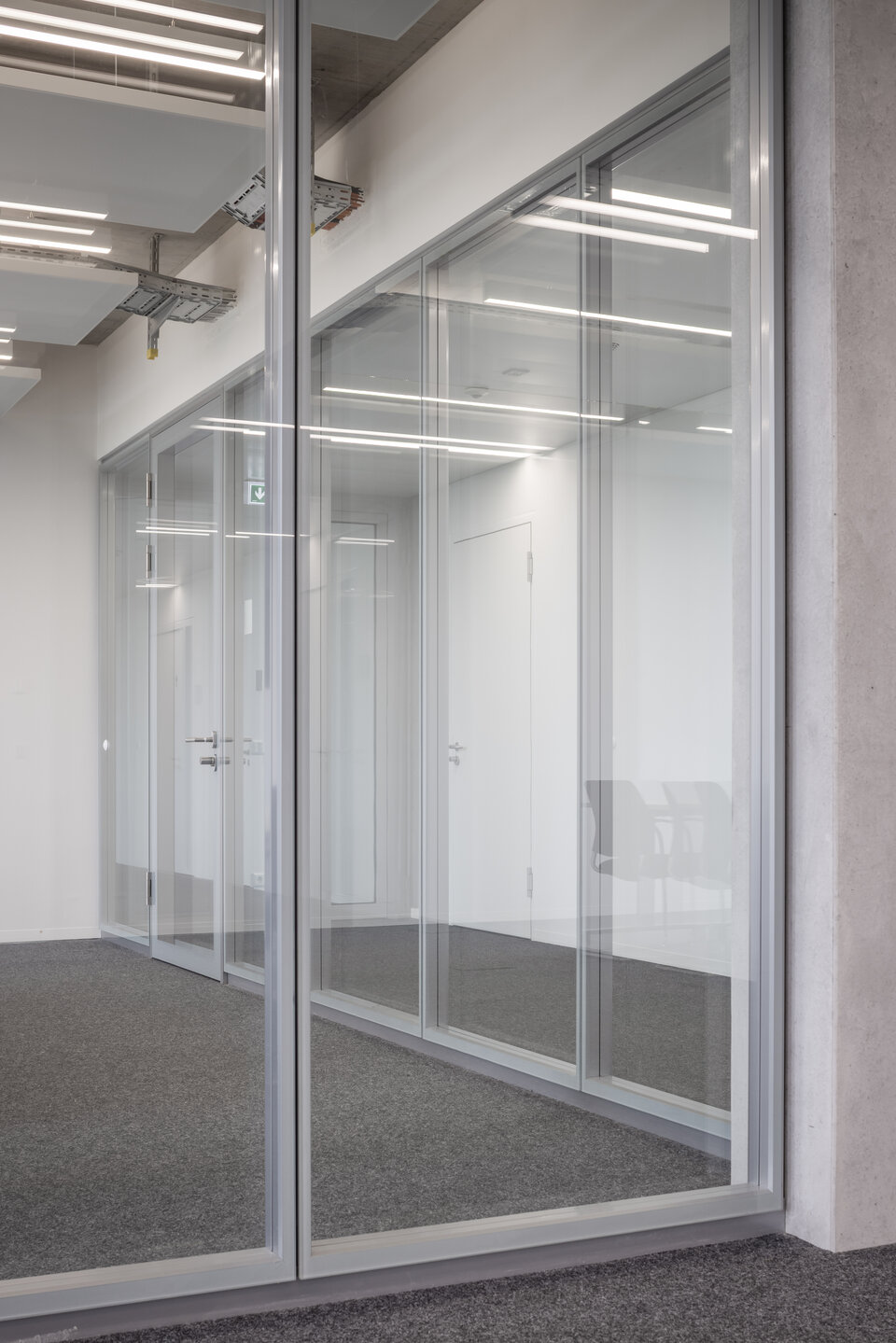Ergänzt werden die Trennwandsysteme durch Schallschutztüren GTB 100 mit Aluminiumzargen, die hohe akustische Anforderungen erfüllen und gleichzeitig gestalterische Akzente setzen.