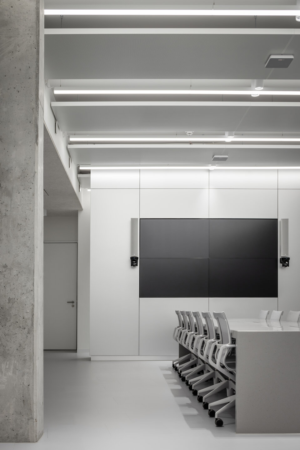 Weitere Ausbauleistungen umfassten Trockenbauarbeiten, Fliesen- und Natursteinverkleidungen, maßgeschneiderte Möbel sowie die Installation der LMD-St 214 Streckmetalldecke, welche mit ihrem Cradle to Cradle Certified® Gold-Zertifikat einen entscheidenden Beitrag zum hohen Nachhaltigkeitsstandards des Gebäudes leistet.