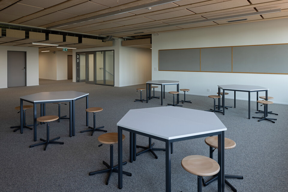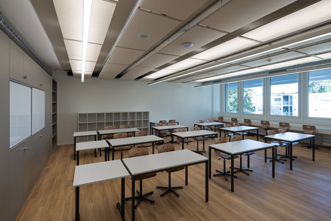 Für eine lernfreundliche Akustik wurden die Unterrichtsräume mit MUTE+® Schallabsorber ausgestattet. Die flexibel anpassbaren Akustikelemente reduzieren den Geräuschpegel spürbar und fördern damit sowohl die Konzentrationsfähigkeit der Schüler als auch die Sprachverständlichkeit im Unterricht.