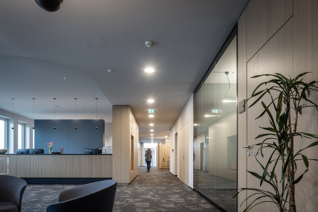 Die Innenarchitektur des Gebäudes verbindet Offenheit mit gezielter Zonierung, um verschiedene Arbeitsweisen zu unterstützen. Ein entscheidender Beitrag hierzu kam von der Lindner Group mit hochwertigen Trennwandsystemen.