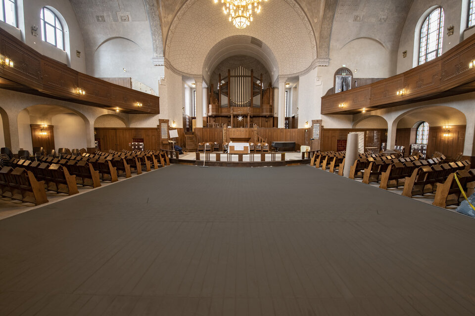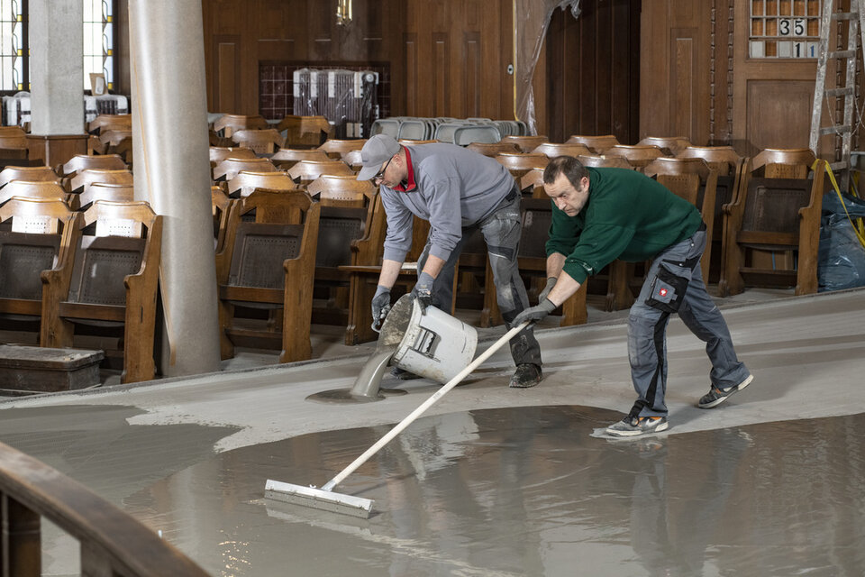 Im Zuge von Sanierungsarbeiten realisierte Lindner GFT die Fußbodenheizung im Mittelschiff und dem Altarbereich mit der NORIT-Fußbodenheizung NORIT-TE 30 Therm GF (Gipsfaser), die Trockenestrich und Fußbodenheizung vereint. Mit einer niedrigen Aufbauhöhe von nur 33 mm war das System auch für diese Bestandssanierung die überzeugende Lösung. Nach Einbringung der NORIT-Vergussmasse ist das System bereits nach 4 Stunden begehbar und nach 24 Stunden belegreif, was positive Effekte für die Bauzeit mit sich bringt.