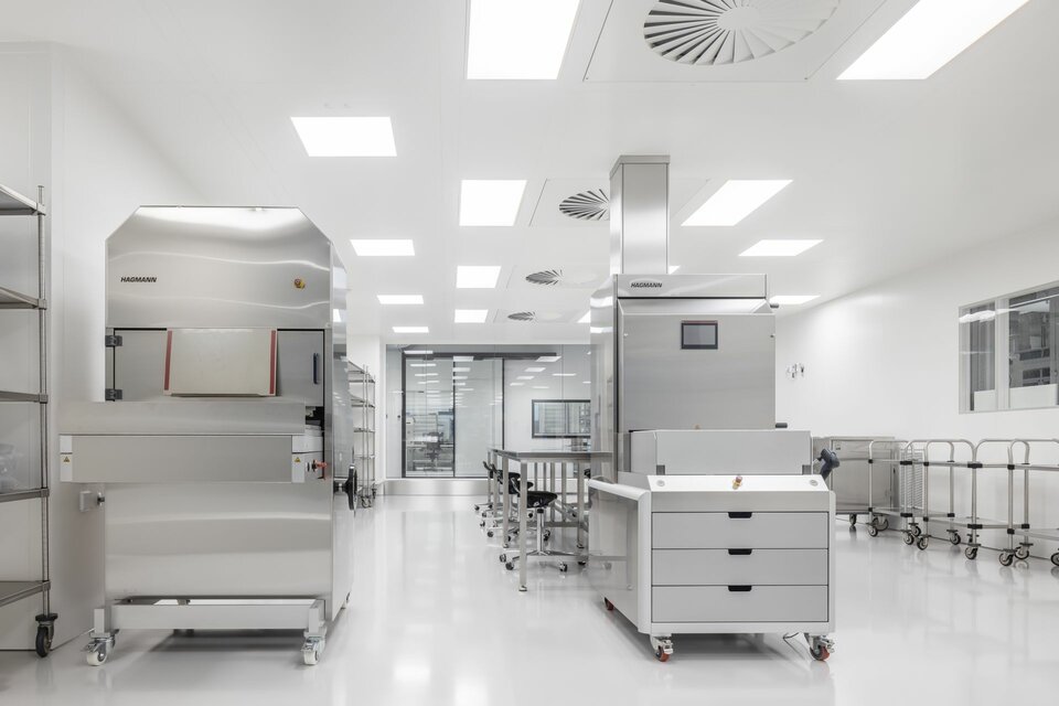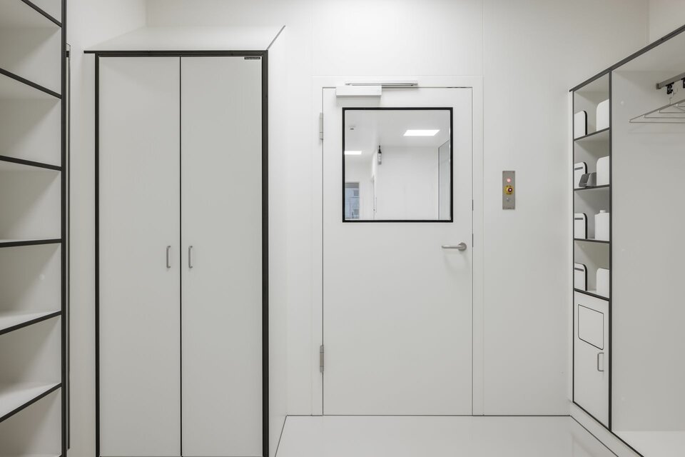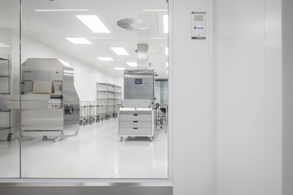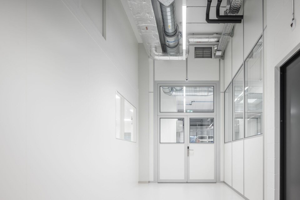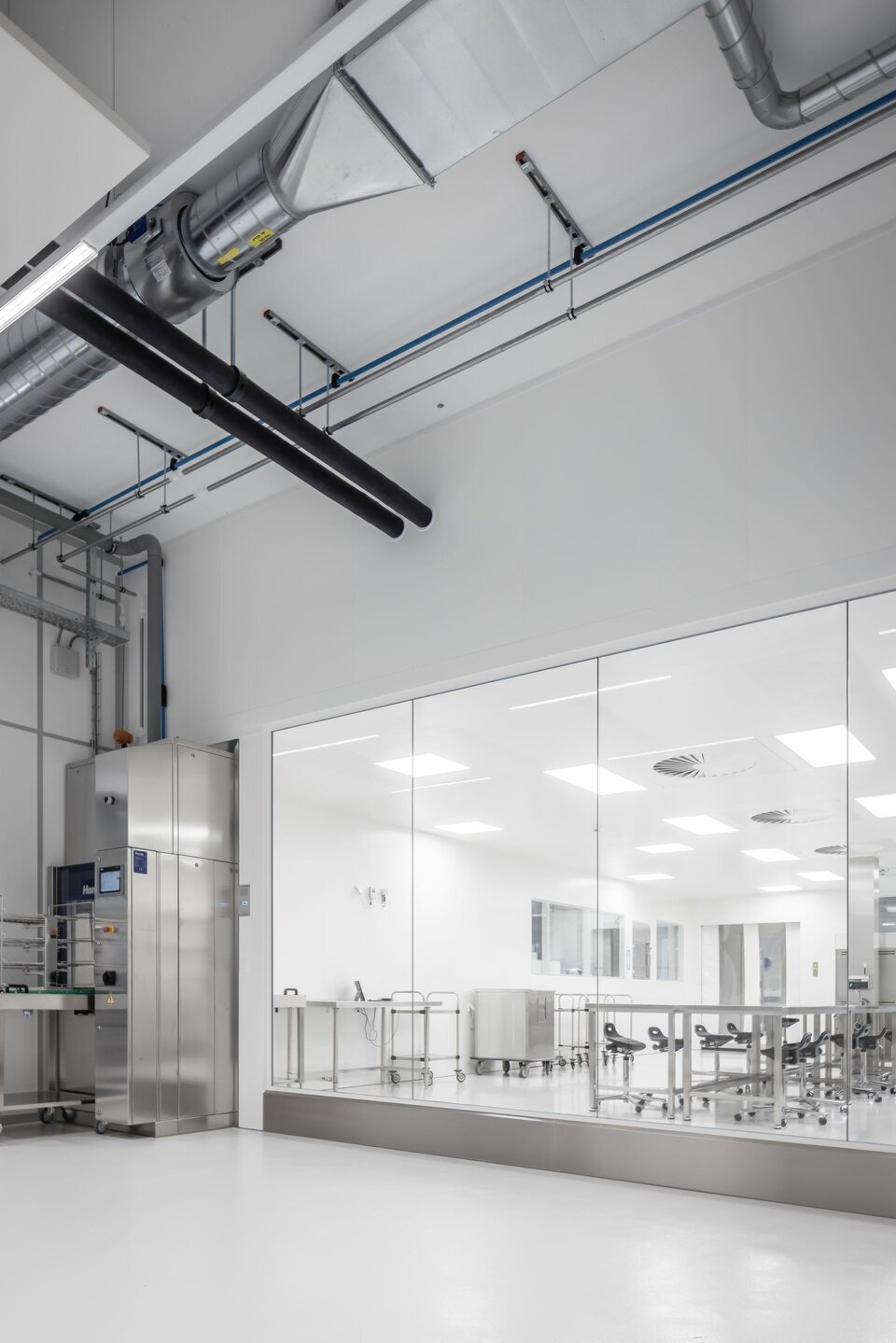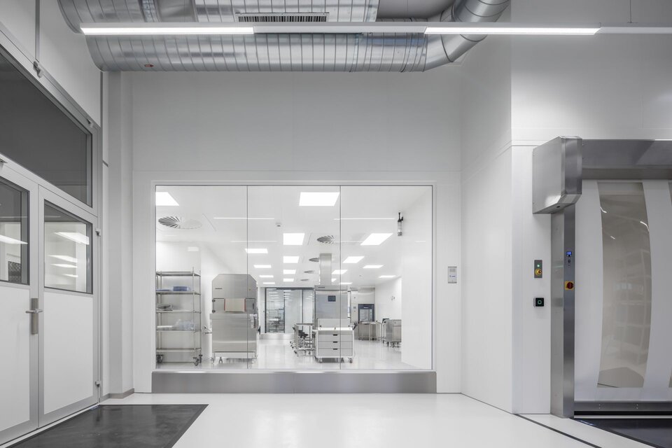 Die Lindner SE war maßgeblich am Ausbau des Reinraumbereichs beteiligt und lieferte speziell angepasste Lösungen, die den hohen Anforderungen an Hygiene und Funktionalität gerecht werden. Dabei kamen robuste, zum Teil brandschutzgeprüfte Stahlblechtüren sowie 2-schalige Pharmawände zum Einsatz, die eine hohe Stabilität und Keimresistenz bieten.