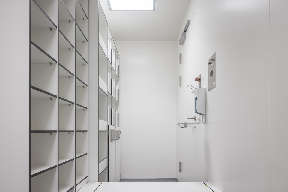 Für den Ausbau setzte die Lindner Group auf maßgeschneiderte Produkte und Leistungen, die die besonderen funktionalen und hygienischen Anforderungen einer Krankenhausapotheke optimal erfüllen. Zum Einsatz kamen Multiclean Wandsysteme in 1-schaliger und 2-schaliger Ausführung. Mit ihren glatten, leicht zu reinigenden Oberflächen ermöglichen sie die Einhaltung strenger Reinraumstandards. Ergänzt wurden diese durch Metal-G13/19-Wandschalen, die eine robuste und zugleich hygienische Wandgestaltung gewährleisten.