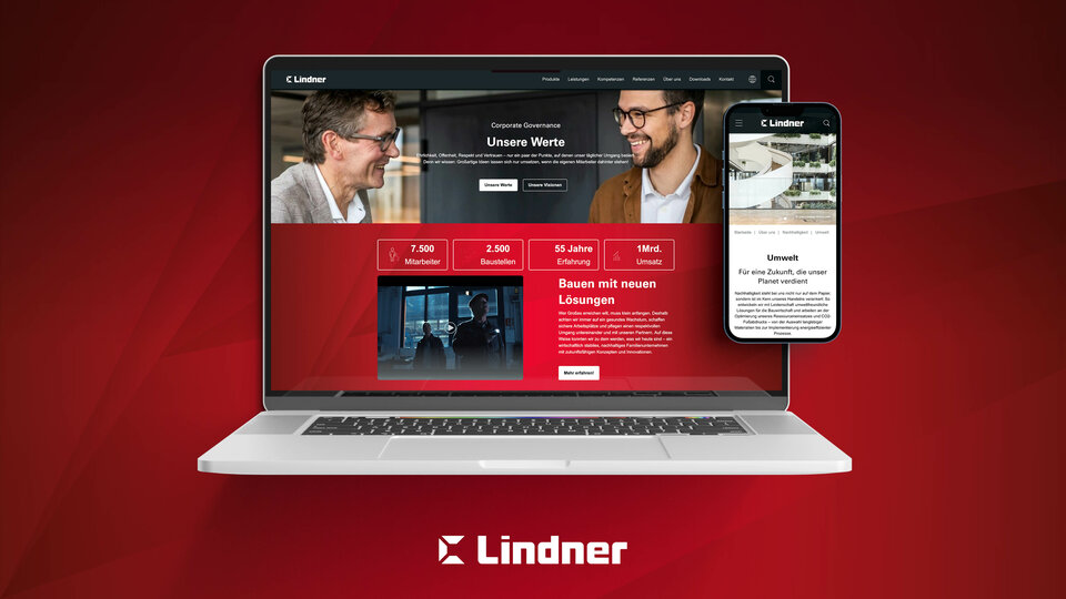 Um die Bedürfnisse sämtlicher Zielgruppen auch weiterhin zu erfüllen, war eine neue, zeitgemäße Version der Lindner Group Website gefragt. Dafür erarbeiteten die Bereiche Marketing und Digital gemeinsam mit den Lindner Produkt- und Servicebereichen ein umfangreiches Konzept. Das neue Corporate Design war dabei nur einer von vielen Meilensteinen. Eine optimierte Produktsuche, verkürzte Klickwege und eine intuitive Nutzerführung geben allen Lindner Produkten, Leistungen und Referenzen einen zeitgemäßen Rahmen. Ziel war es stets, eine Lösung zu gestalten, die Kunden, Partnern, Lieferanten und allen am Unternehmen Interessierten einen klaren Mehrwert bietet.