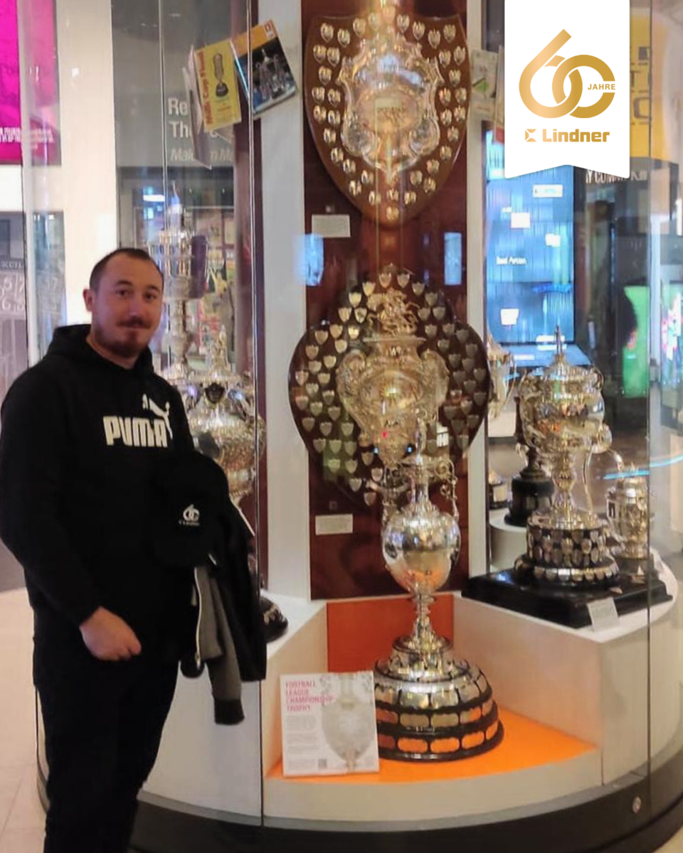 In Manchester tauchte Dariusz in unsere Fassadenprojekte ein: Die gesamte Gebäudehülle der Indoor-Arena Co-Op Live Arena wurde von uns umgesetzt. Für die Aviva Studios produzierten wir das Dach, Lindner Prater und BEMO realisierten zudem die Fassaden- und Dachverkleidung im Everton Football Stadium.