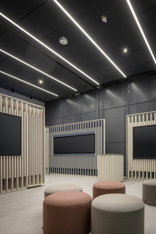 Durch den Einsatz modernster Planungsprinzipien entstand letztendlich ein funktional und zukunftssicher gestaltetes Gebäude nach internationalen Nachhaltigkeitsstandards mit angestrebter LEED Gold Zertifizierung. Die Lindner Group spielte hierbei eine entscheidende Rolle, indem individuell gestaltete Glas- und Holztrennwände in den Bürobereichen installiert wurden. Diese ermöglichen den Mitarbeitern vor Ort die nötige Separation in den ansonsten offenen Arbeitsbereichen und verbessern zugleich die Raumakustik. Passende Aluminium-Rohrrahmentüren tragen zum modernen Charakter der Innenräume bei.