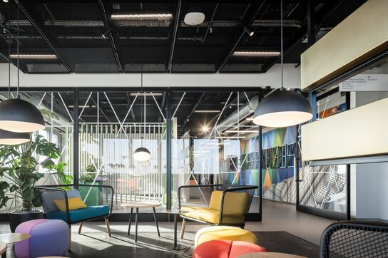 Der Lindner Cube, ein weiteres Raum-in-Raum System der Lindner Group, ermöglicht die Realisierung großer Raumgrößen und zeichnet sich durch hervorragende Schalldämmung sowie die Option zur Integration von Kühlung aus. Beide Systeme ermöglichen konzentriertes Arbeiten in offenen Bürostrukturen und bieten exzellente Schalldämmung. Zusätzlich verbessern die flexiblen Schallabsorber MUTE+® für Decken und Wände die Sprachverständlichkeit und verkürzen die Nachhallzeit, besonders in Großraumbüros.