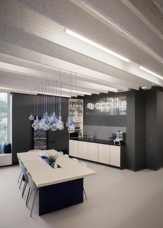 Die Hamburger Unternehmensgruppe applike bietet mit verschiedenen Tochterunternehmen einerseits Technologie für die Verwaltung und den Vertrieb von Mobile Apps an und vertreibt andererseits eigene Apps und Mobile Games weltweit. Aufgrund des Unternehmenswachstums und um den sich ständig ändernden Anforderungen gerecht zu werden, bezog die Gruppe nun neue Büroräume in der Hamburger Innenstadt. Im Rahmen des Neubaus war Lindner für den Komplettausbau der drei Etagen sowie den Mieterausbau im Erdgeschoss an der Alster 42 in Hamburg verantwortlich.