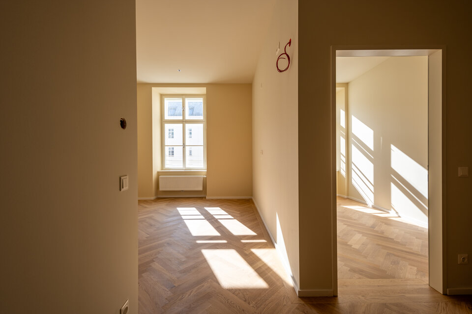 In zwei Mietflächen kamen sowohl hochwertige Lindner Life Clear Glastrennwände als auch Holz- und Rohrrahmentüren zum Einsatz. Sie gliedern moderne Büro- und Besprechungsräume klar und gestalterisch anspruchsvoll und verbinden dabei Transparenz mit Funktionalität. Akustisch wirksame Vorsatzschalen an den Wänden verbessern zudem die Schallisolierung und tragen zu einer ruhigen Arbeits- und Wohnatmosphäre bei.