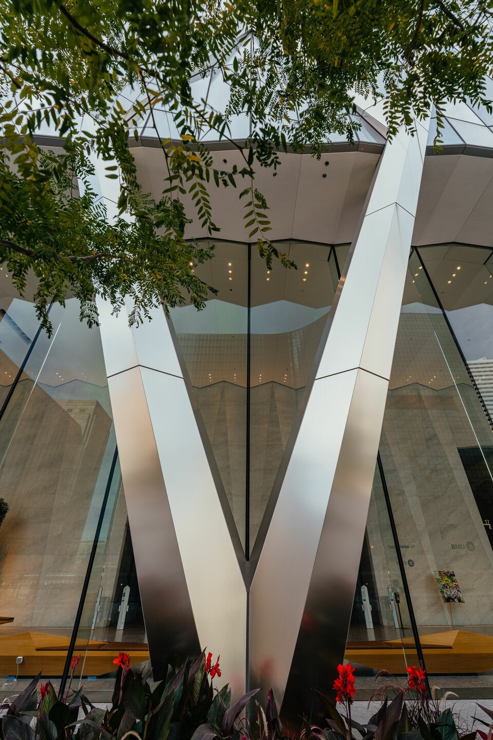 Ein Highlight des Gebäudes ist die von Lindner Steel & Glass realisierte gläserne Lobbyfassade, bei der man sich für mehr Verspieltheit und ein offenes Erscheinungsbild in Form von v-förmigen Stützen und eine leicht nach hinten versetzte Eingangssituation entschied. Hierfür wurden durchgängige Glaselemente mit einer Höhe von 12,5 m und einer Breite von 3 m verwendet, die sowohl ästhetischen Ansprüchen als auch höchsten Sicherheitsstandards gerecht werden. Die einzelnen Glaselemente, laminiert mit Sentryglas plus und beidseitig entspiegelt, werden von Glasschwertern gestützt und tragen so wesentlich zur statischen Tragfähigkeit der Lobbyfassade bei.
