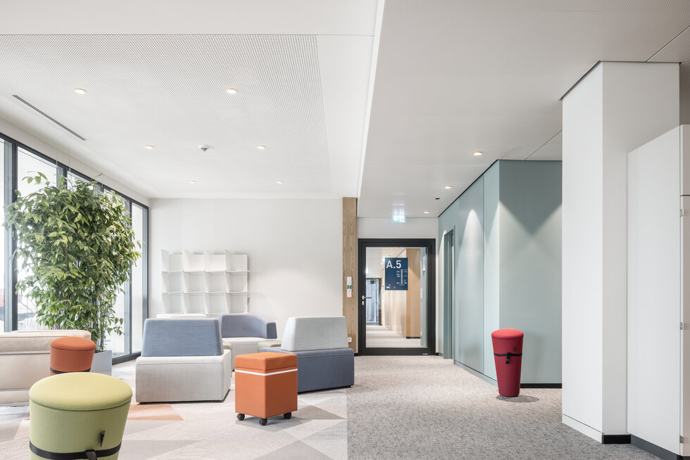 Another Lean Construction project is the DIN building: the German Institute for Standardisation is the contact point for norms and standards throughout Germany. In line with its long-standing existence, the institution decided to completely renovate its headquarters on Burggrafenstraße in Berlin. Lindner was already involved in the planning phase and was ultimately awarded the contract for the fit-out of the office worlds as well as for the handling of the building services, electrical trades and building automation. In addition, the Linder Group delivered numerous systems: among other things, heating and cooling elements, acoustically optimised wall panels, doors and glass partitions were installed. The aim was to support the internal change of the organisation with the appropriate structural conditions. In addition to high design standards, the focus was therefore primarily on spatial comfort and efficient functionality.