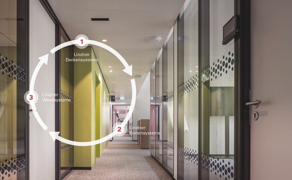 Lindner demonstrates how circular construction works in practice by recycling used calcium sulphate floor panels into the LOOP prime flooring system. By reusing and reprocessing used boards in conjunction with a take-back agreement, over 70 % of CO2 and over 90 % of water are saved compared to new production. The quality in terms of statics, walking comfort, load-bearing capacity and flexibility of use remains the same.