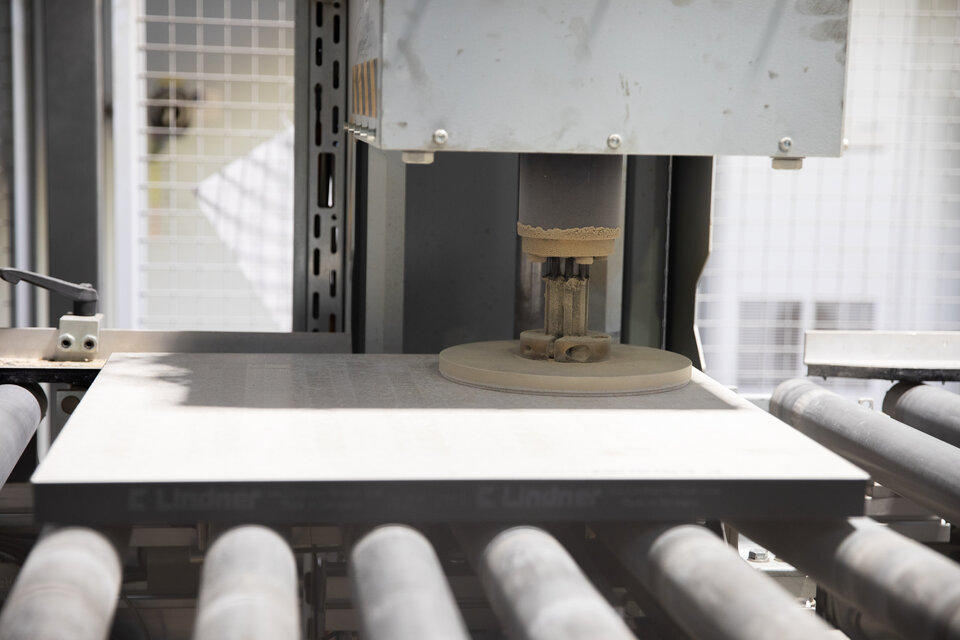 During the production process, the panels were carefully reconditioned: first, metallic residues were removed before a robot milled the surface and the edges. A new edge band was then applied, restoring the panels to a like-new condition.