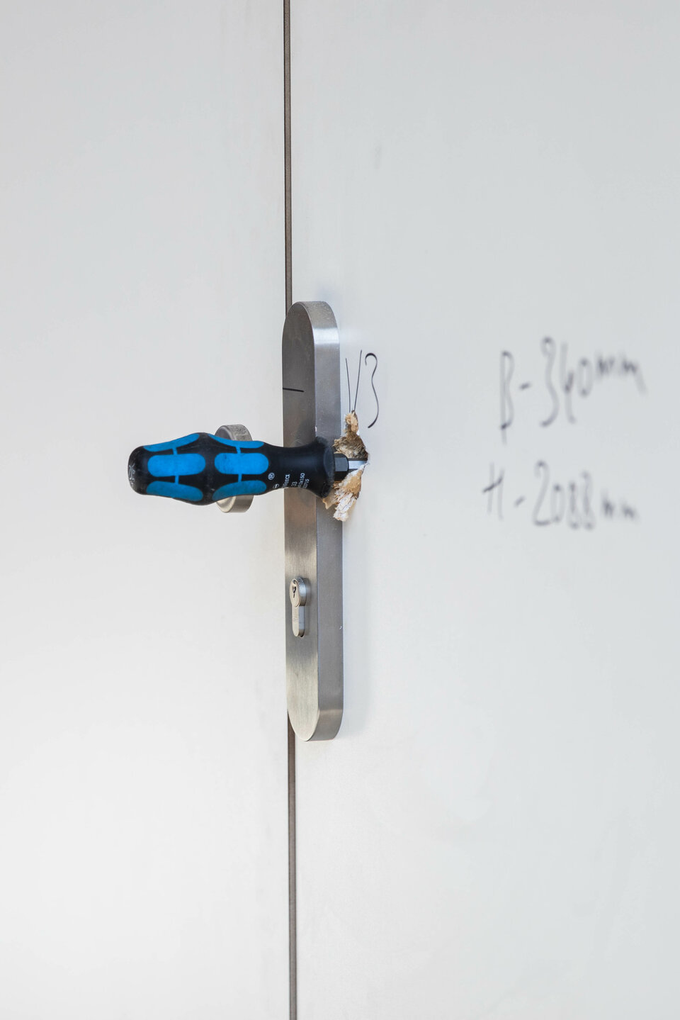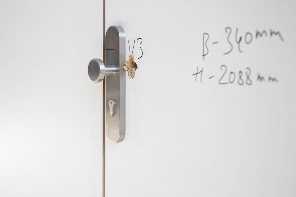 Our burglar-resistant doors withstand even the most forceful attacks – their protection remains intact even under extreme physical assault. Tests conducted in accordance with DIN EN 1627 demonstrate this clearly: creating a hole like the one shown in the picture simply isn’t possible with our doors.