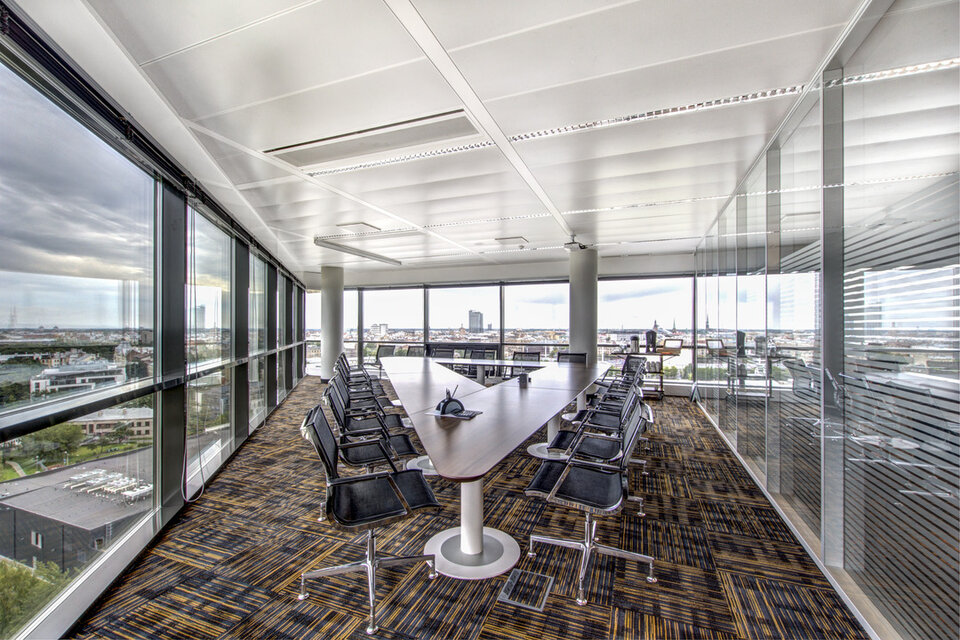 The heated/chilled beam AirBeam is integrated into Plafotherm® heated/chilled ceilings or Lindner LMD metal ceiling systems and can be realised in various designs. AirBeam Basic is avisible heated/chilled beam that is integrated into the ceiling system as a single element with big perforation and wide slots. It is additionally connected to a central air supply machine. Thanks to the targeted air circulation through supply air, high capacities can be achieved with this product.