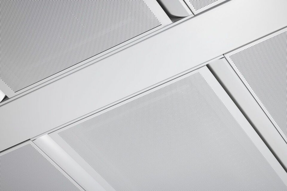 The heated/chilled beam AirBeam is integrated into Plafotherm® heated/chilled ceilings or Lindner LMD metal ceiling systems and can be realised in various designs. AirBeam Discreet is a discreet heated/chilled beam that is adapted to the perforation of the ceiling system and is only visible through small slots on the room side. It is additionally connected to a central air supply machine. Thanks to the targeted air circulation through supply air, high capacities ca be achieved with this product.