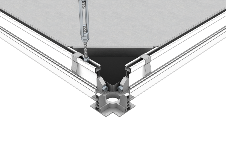 Specifically developed for use in electronic clean rooms, the Crossdata 55A Junction Ceiling System offers all the advantages expected from a highly flexible, modular and load-bearing ceiling system. The simple system design guarantees fast and consequently economical installation. Various mounting options for filter fan units as well as the option of sprinkler feeds through the junction points are further advantages for use in the electronics industry.