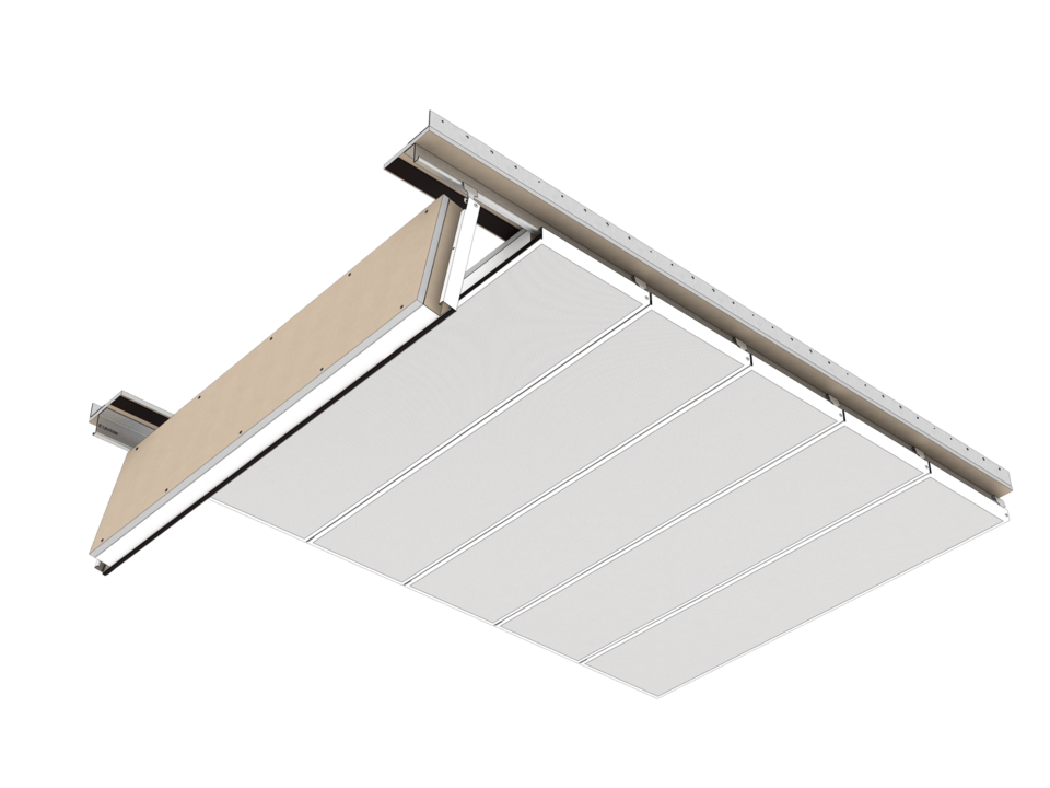 The ceiling elements of this fire ratedceiling can be removed or swung down and slid without the need for any tools. No additional ceiling void is necessary for maintenance works. Moreover, up to three ceiling elements can be moved together to facilitate maintenance works. Tolerances on the wall can be compensated. Lockable elements are available for areas with increased safety requirements.