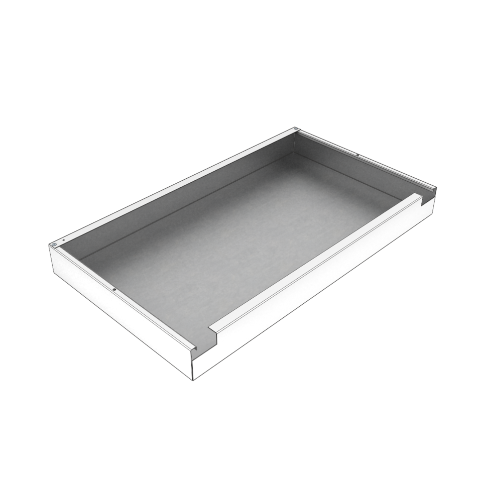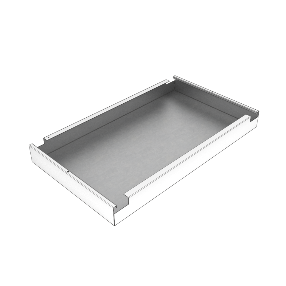 This canopy ceiling without frame can freely be arranged and offers a multitude of design options. The open construction of the single canopy ceilings allows a view to the concrete ceiling and is an economic solution. The elements can quickly and easily be installed. Each ceiling panel can individually be removed without the need for any tools. An independent installation of luminaires or fixtures is possible between the canopies.