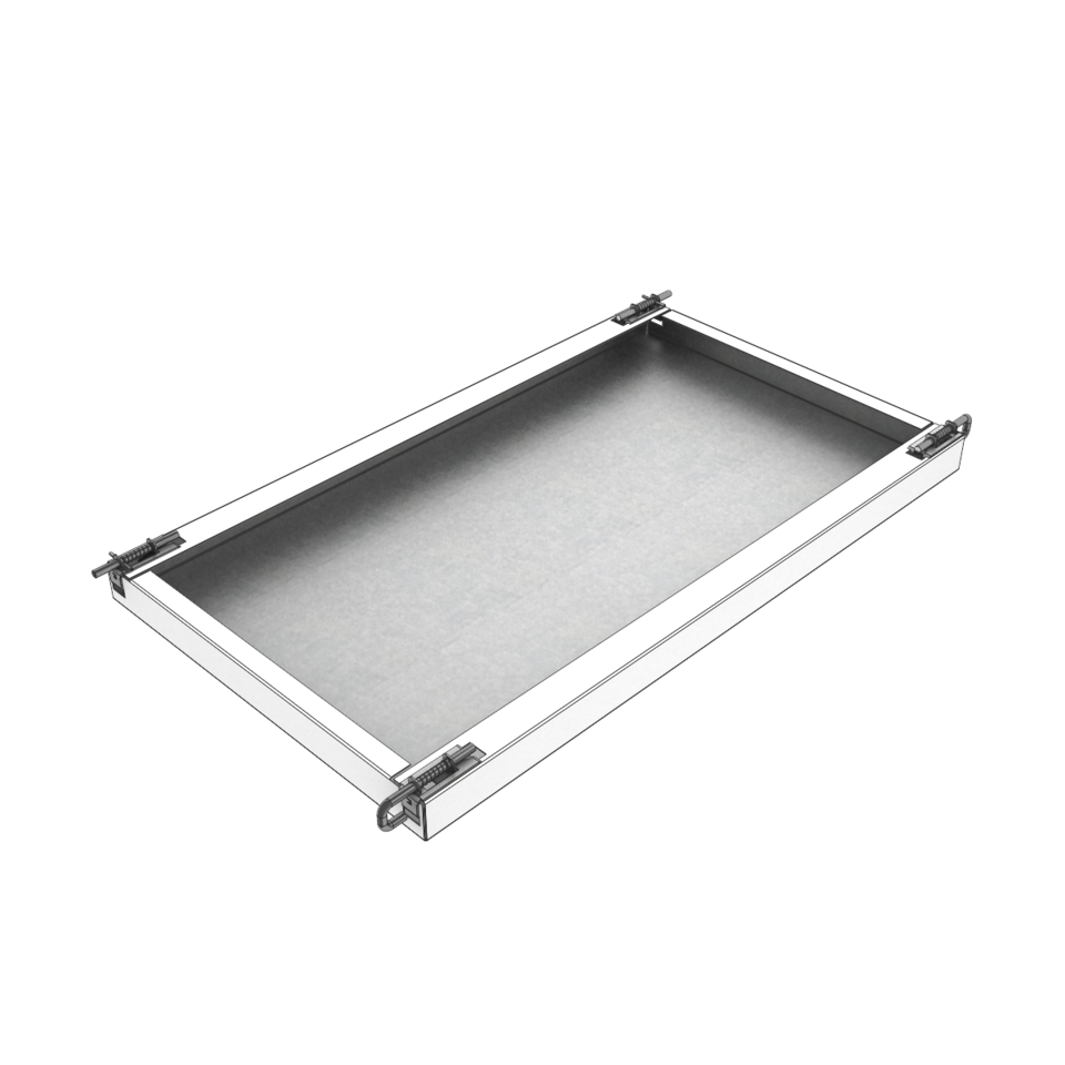The freely spanned corridor ceiling LMD-E 321 has an appealing look due to continuous wall profiles. A compensation of tolerances on the wall is possible thanks to an adjustable wall connection. By means of an operating tool, each ceiling panel can individually be swung down and slid on the longitudinal or short side.