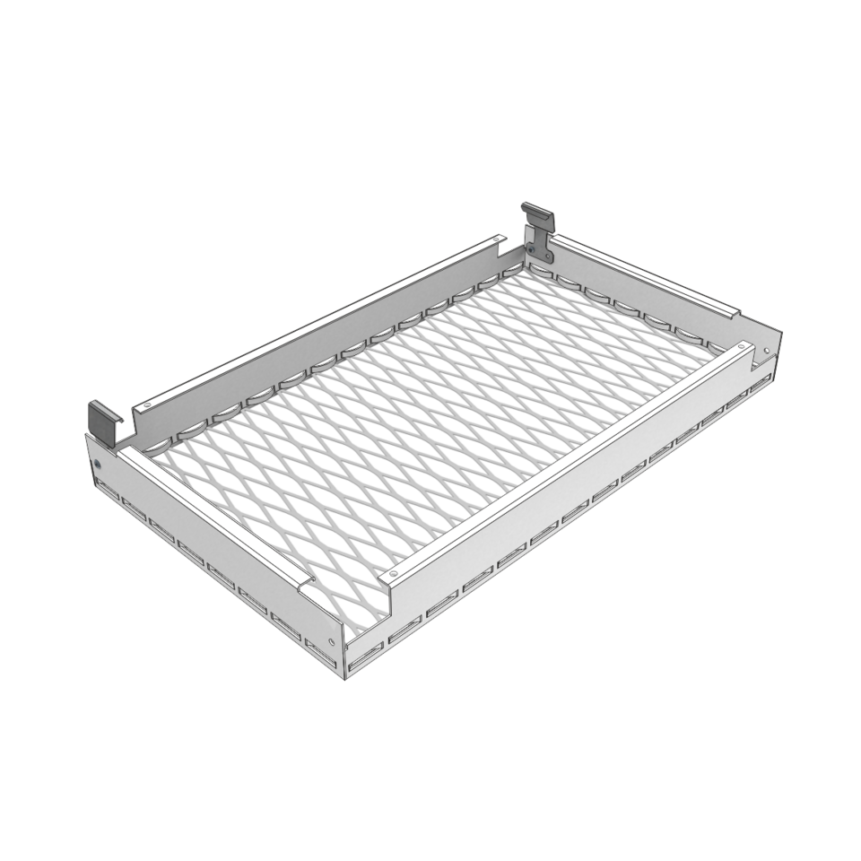 The system LMD-St 213 impresses with design freedom and ease of maintenance. Diverse mesh types, shapes and sizes are available. The ceiling panels can be removed – a combination with Swing-Down ceiling panels is also possible. Create visual highlights with accentuated joints up to 30 mm, or expanded ceiling panels with backlighting.